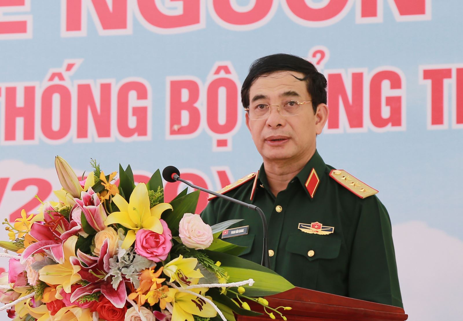 Thượng tướng Phan Văn Giang, Ủy viên Trung ương Đảng, Ủy viên Thường vụ Quân ủy Trung ương, Tổng Tham mưu trưởng QĐND Việt Nam, Thứ trưởng Bộ Quốc phòng phát biểu tại Lễ cắt băng khánh thành và bàn giao công trình đường giao thông cho huyện Định Hóa, tỉnh Thái Nguyên.