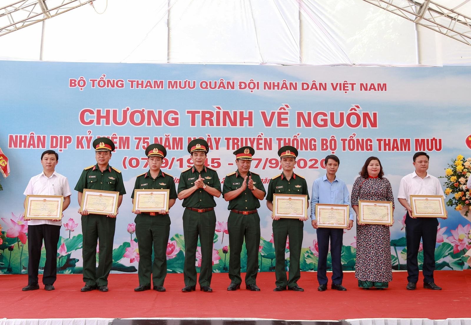 Thủ trưởng Bộ Tổng Tham mưu tặng Bằng khen cho các tập thể vì đã hoàn thành xuất sắc nhiệm vụ thi công các công trình “Đền ơn đáp nghĩa” của BTTM tại ATK Định Hóa, Thái Nguyên.