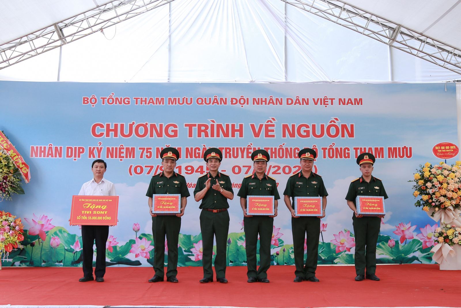 Thủ trưởng Bộ Tổng Tham mưu trao biểu trưng ủng hộ Quỹ “Đền ơn đáp nghĩa” các xã: Định Biên, Bảo Linh và Điềm Mặc thuộc huyện Định Hóa, tỉnh Thái Nguyên.