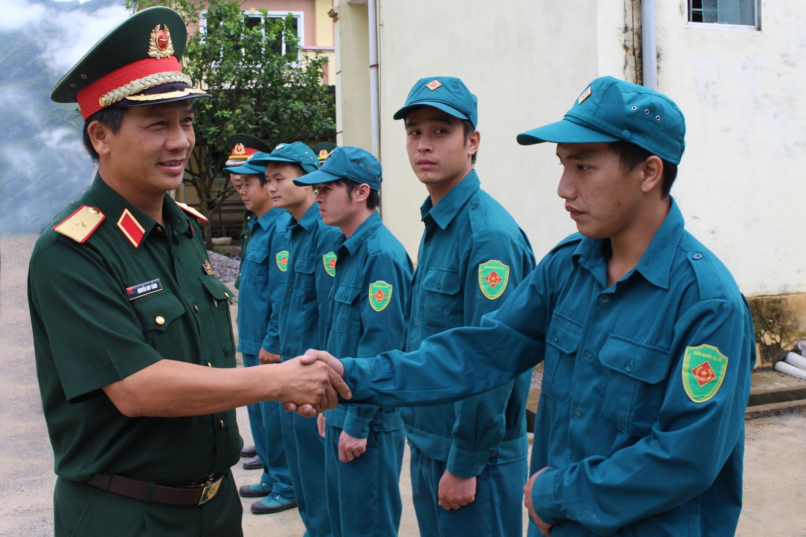 Thiếu tướng Nguyễn Huy Cảnh thăm, động viên Tiểu đội dân quân thường trực biên giới xã Xuân Trường, huyện Bảo Lạc, tỉnh Cao Bằng.