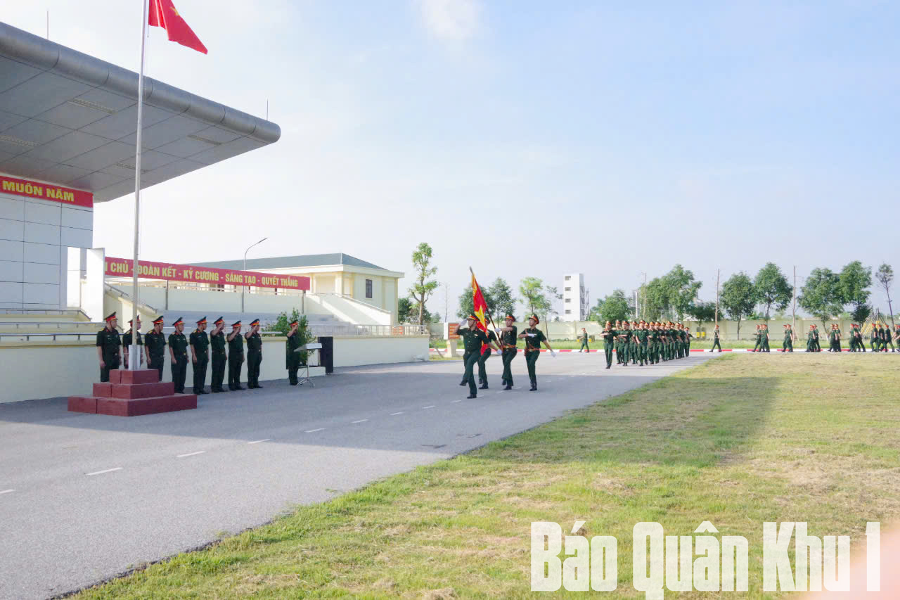 Cán bộ, nhân viên Ban chỉ huy PTKV 4-Hạp Lĩnh trong buổi chào cờ đầu tiên.