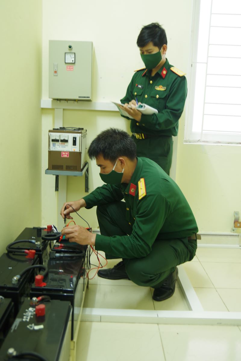 Cán bộ, nhân viên Trung đội Thông tin, phòng Tham mưu, Bộ CHQS tỉnh Cao Bằng kiểm tra khí tài, trang bị.