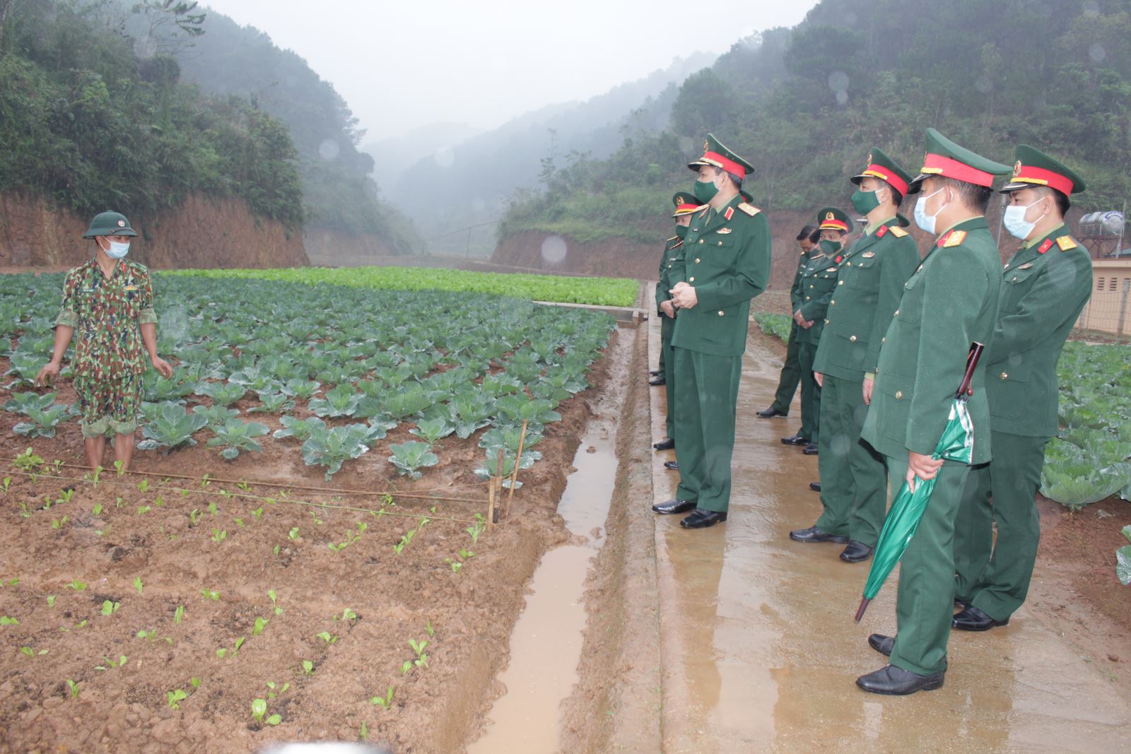 Trung tướng Dương Đình Thông, Bí thư Đảng ủy, Chính ủy Quân khu kiểm tra khu tăng gia của Tiểu đoàn 1, Trung đoàn 123, Bộ CHQS tỉnh Lạng Sơn.