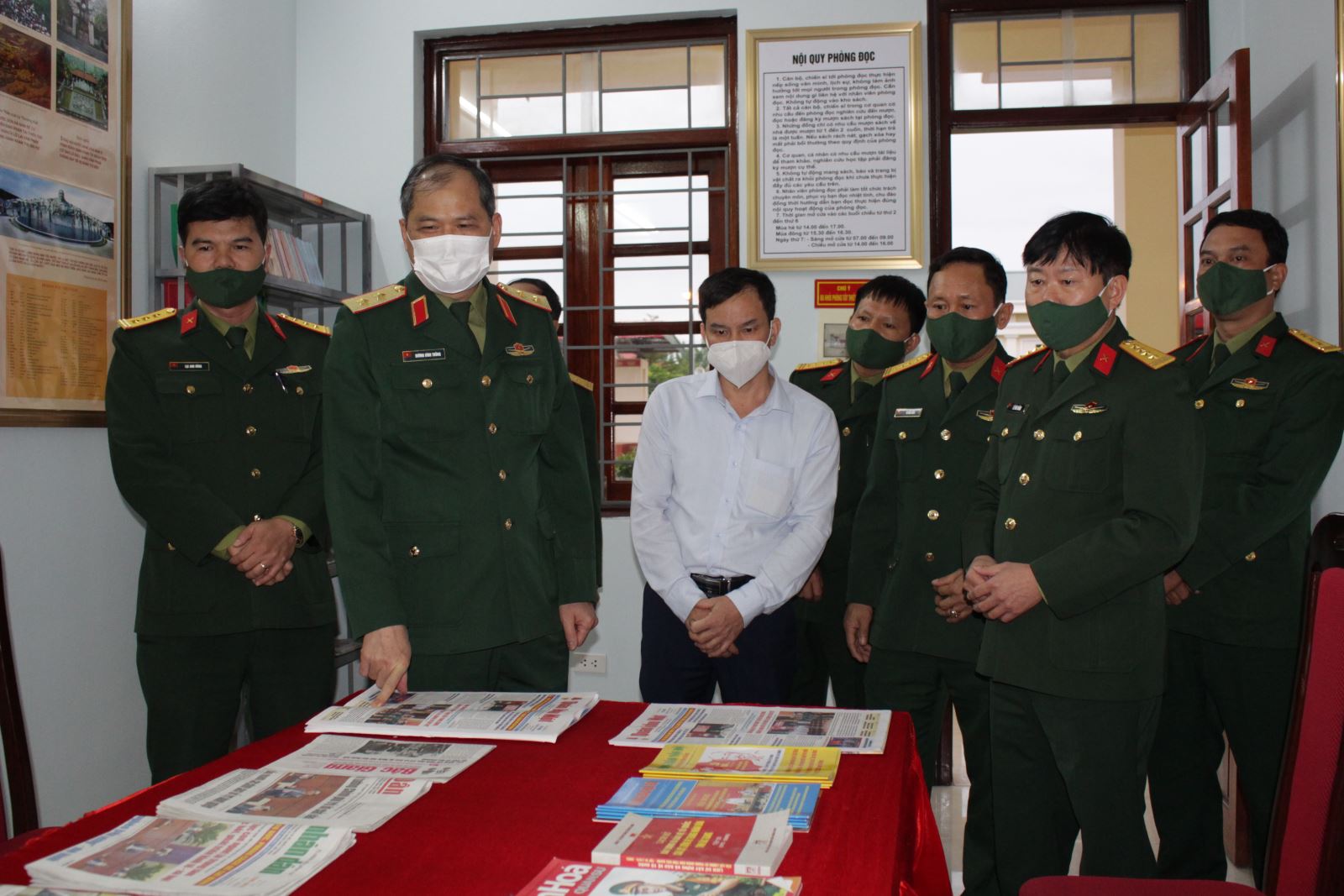 Trung tướng Dương Đình Thông, Bí thư Đảng ủy, Chính ủy Quân khu thăm phòng đọc của Ban CHQS huyện Yên Dũng, Bộ CHQS tỉnh Bắc Giang.