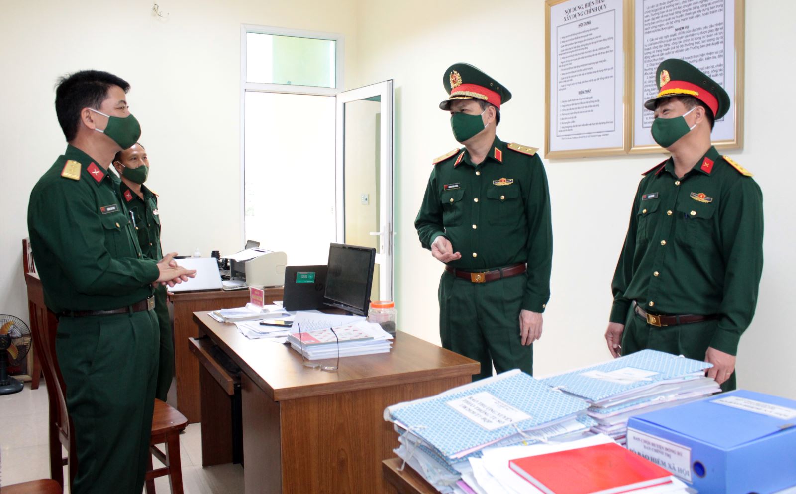 Kiểm tra phòng làm việc của cán bộ Ban CHQS huyện Đồng Hỷ, Bộ CHQS tỉnh Thái Nguyên.