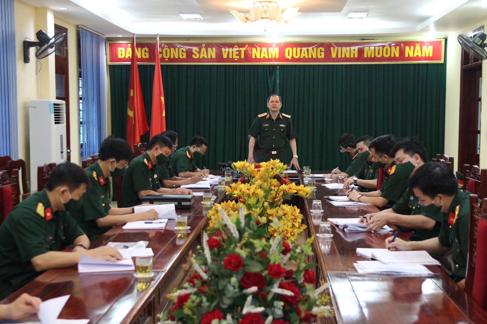 Trung tướng Dương Đình Thông, Bí thư Đảng ủy, Chính ủy Quân khu làm việc với chỉ huy Lữ đoàn và các cơ quan.