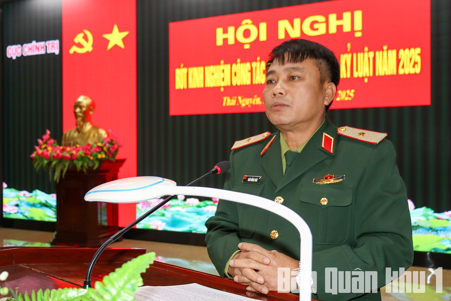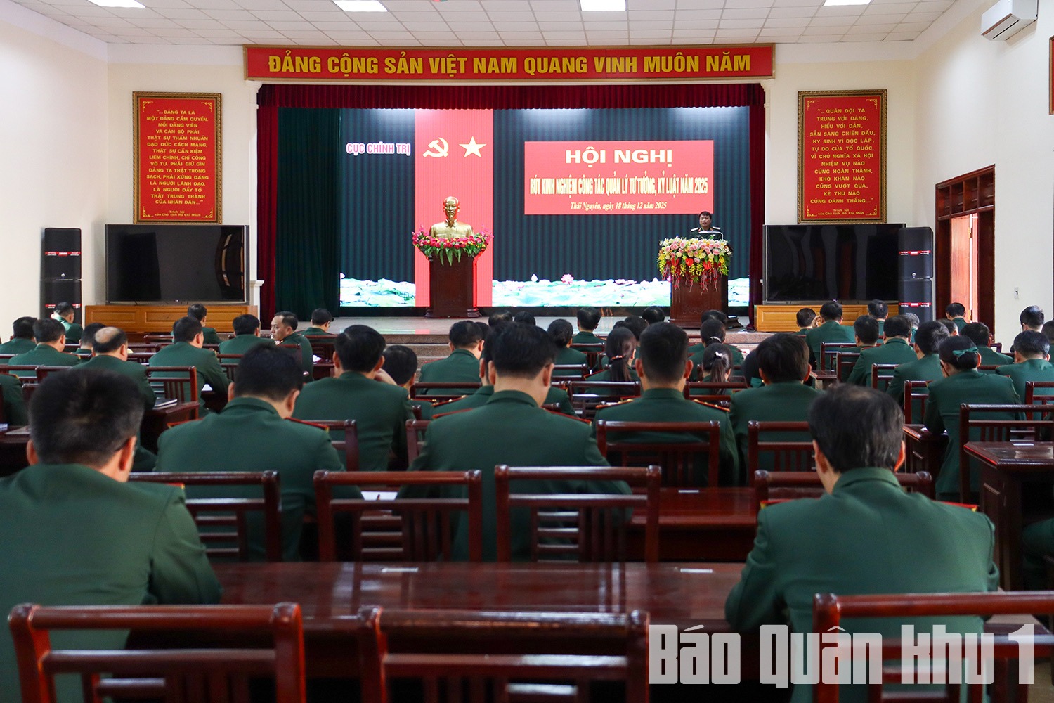 Chiều 18-12, Cục Chính trị tổ chức Hội nghị rút kinh nghiệm công tác quản lý tư tưởng, kỷ luật năm 2025. Thiếu tướng Ngô Hồng Thái, Phó Chủ nhiệm Chính trị Quân khu chủ trì hội nghị.