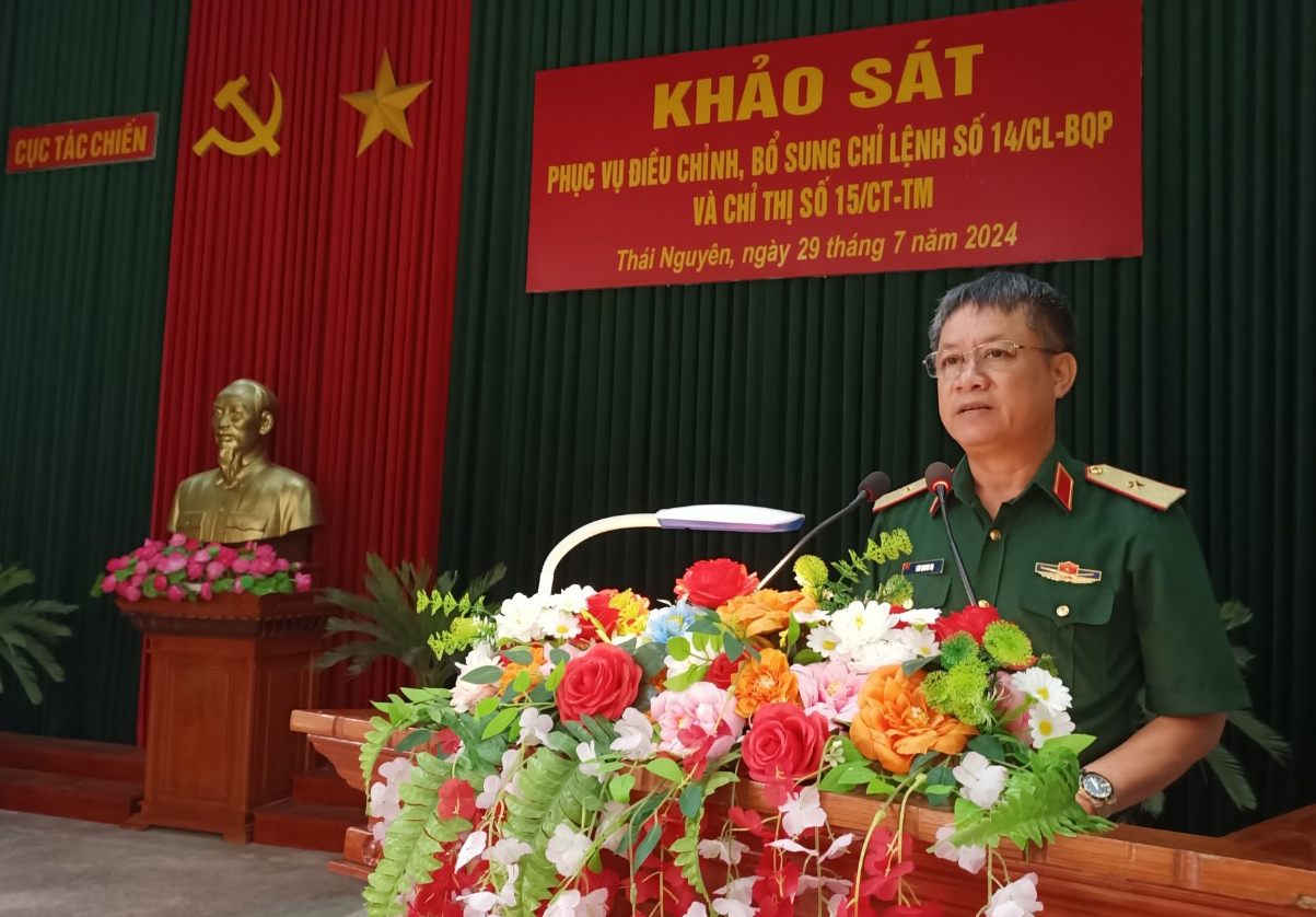 Thiếu tướng Lưu Quang Vụ, Phó cục trưởng Cục Tác chiến, Bộ Tổng Tham mưu phát biểu tại buổi khảo sát đối với Lữ đoàn 382.