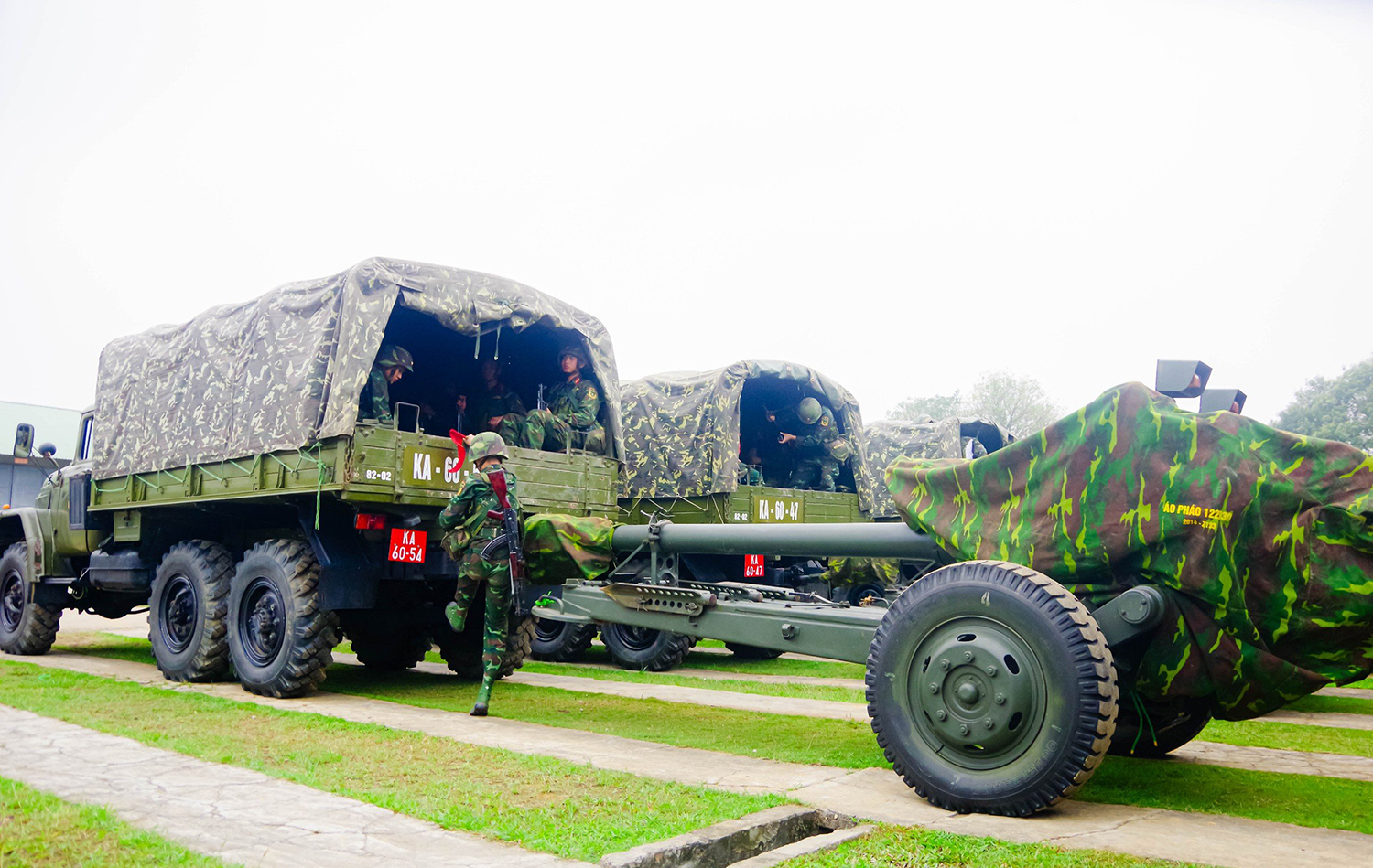 Đội hình xe, pháo của đơn vị sẵn sàng cơ động ra khu sơ tán.