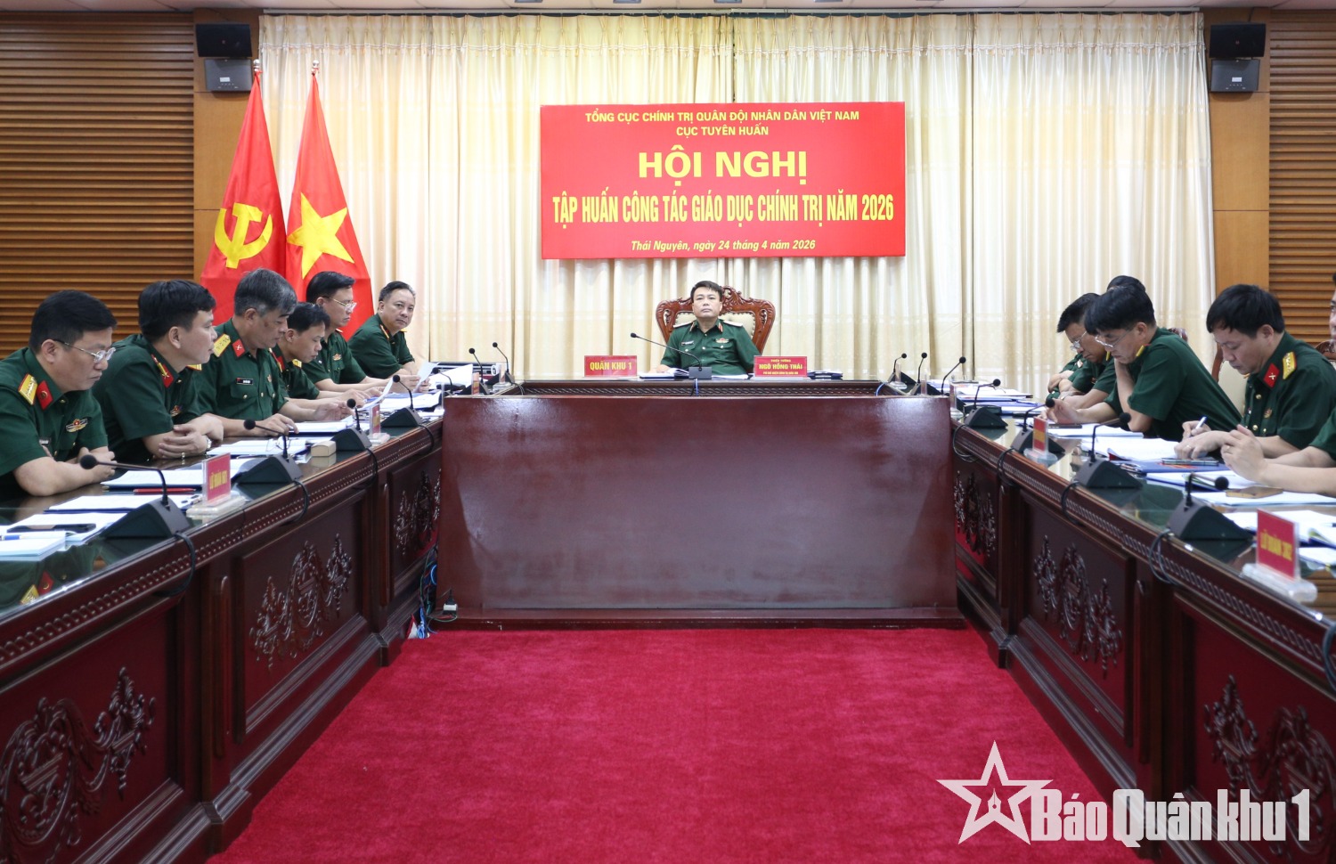 Ngày 24-4, Cục Tuyên huấn (Tổng cục Chính trị) tổ chức Hội nghị tập huấn công tác giáo dục chính trị năm 2026 theo hình thức trực tiếp kết hợp trực tuyến tại 166 điểm cầu trong toàn quân. Thượng tướng Trương Thiên Tô, Ủy viên Trung ương Đảng, Phó chủ nhiệm Tổng cục Chính trị dự, phát biểu chỉ đạo khai mạc tập huấn.