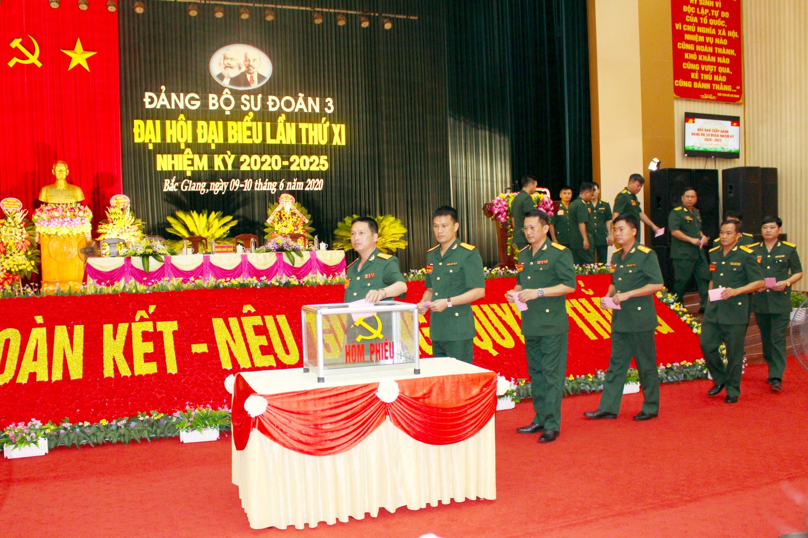 Các đại biểu bỏ phiếu bầu Ban chấp hành Đảng bộ Sư đoàn 3 nhiệm kỳ 2020-2025.