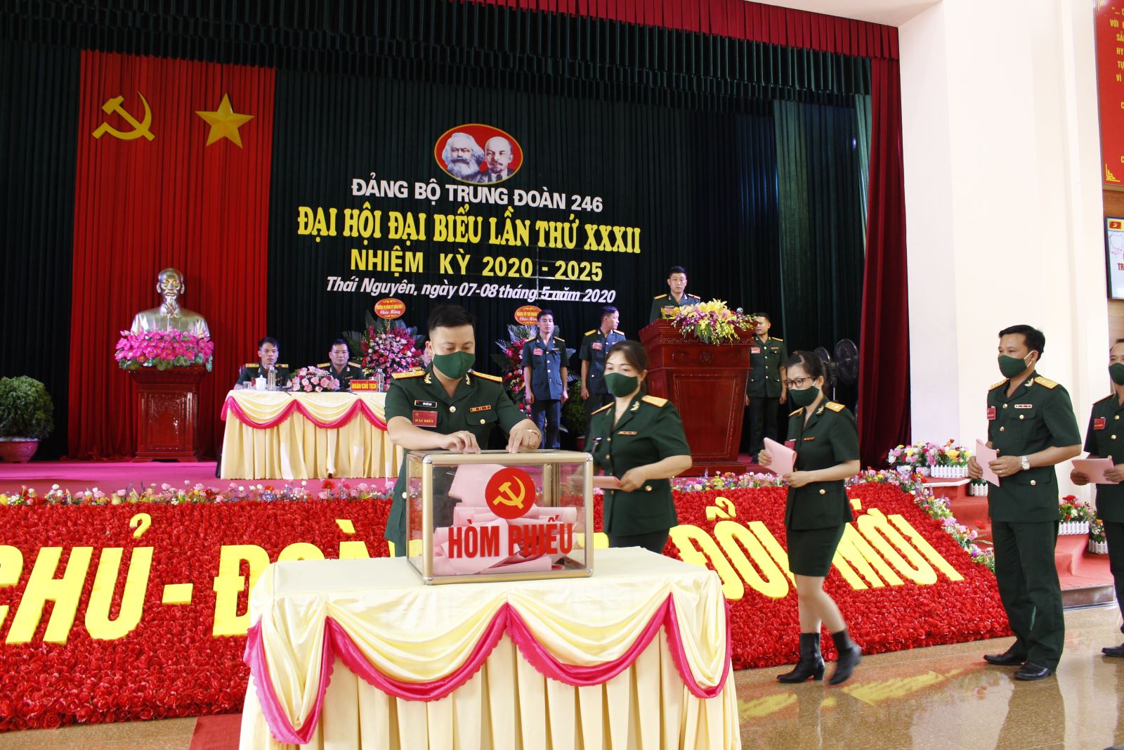 Các đại biểu bỏ phiếu bầu Ban chấp hành Đảng bộ Trung đoàn 246 nhiệm kỳ 2020-2025.