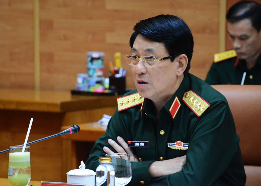 Thượng tướng Võ Minh Lương, Ủy viên Trung ương Đảng, Ủy viên Thường vụ Quân ủy Trung ương, Thứ trưởng Bộ Quốc phòng phát biểu tại hội nghị.