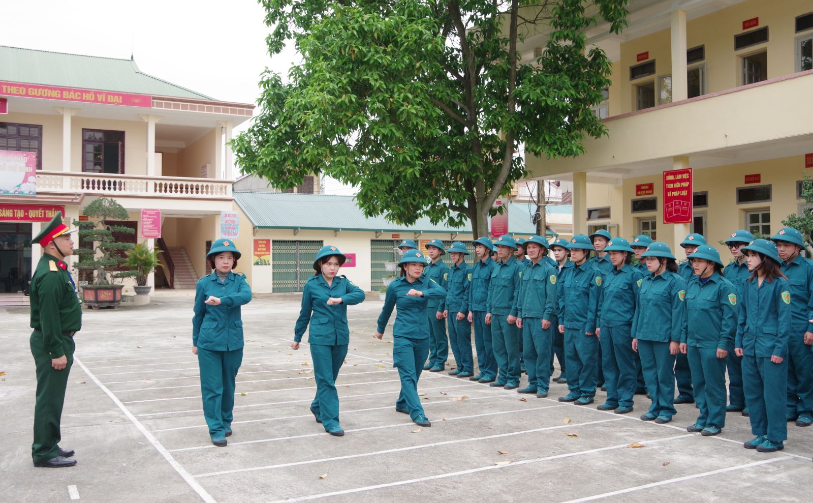 Cán bộ Ban CHQS thành phố Lạng Sơn huấn luyện điều lệnh đội ngũ cho chiến sĩ dân quân năm thứ nhất.