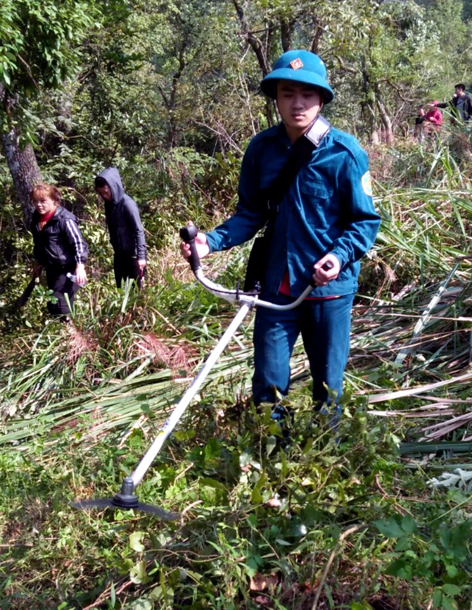 Dân quân xã Tân Thanh (Văn Lãng, Lạng Sơn) tham gia phát quang đường tuần tra biên giới.