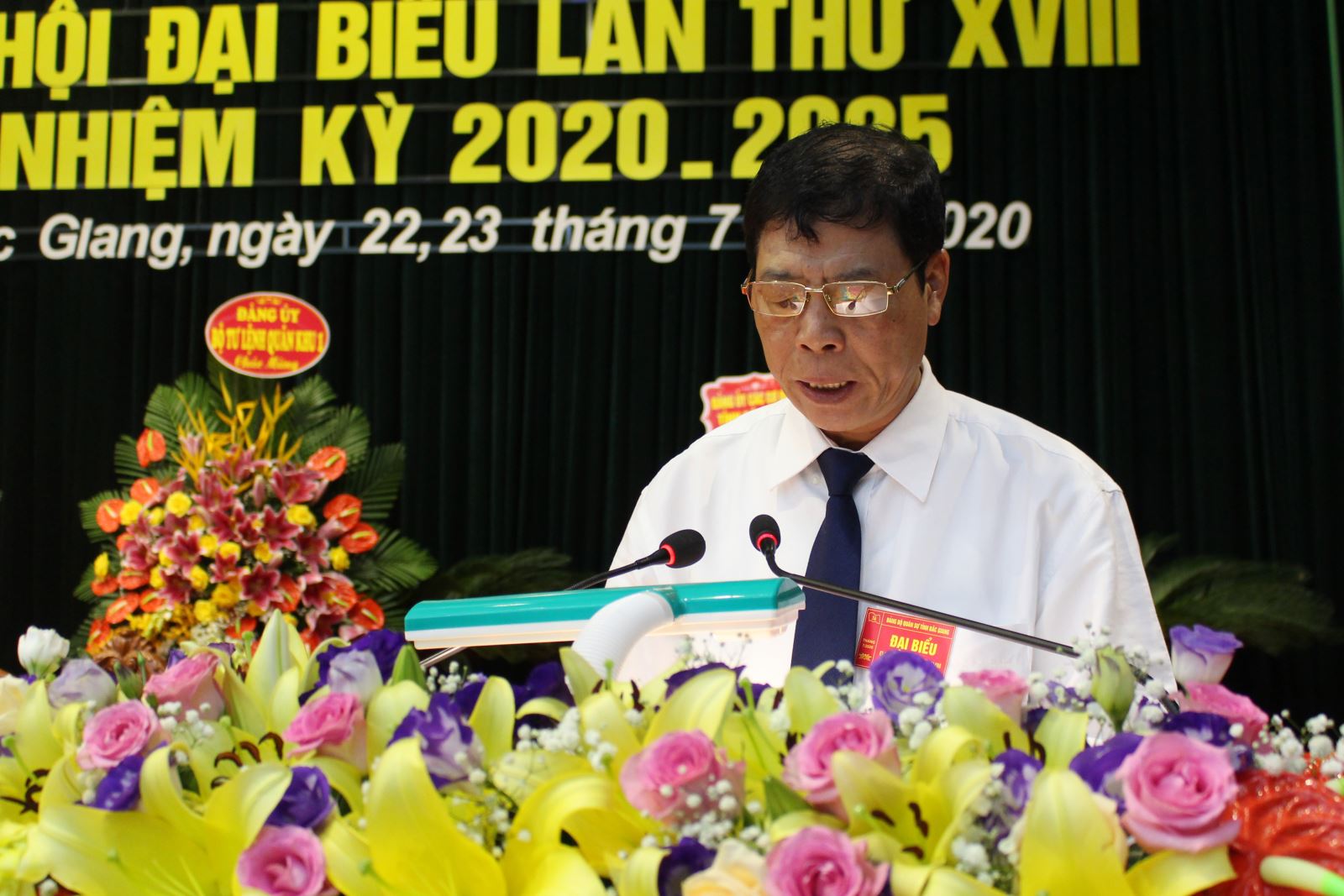 Với tinh thần trách nhiệm cao, Đại hội đã phát huy dân chủ, tập trung trí tuệ, thảo luận, tham gia nhiều ý kiến có chất lượng vào các văn kiện và thống nhất đánh giá: Nhiệm kỳ qua, Đảng bộ Quân sự tỉnh Bắc Giang đã lãnh đạo, chỉ đạo, triển khai hoàn thành tốt các nhiệm vụ, chỉ tiêu Nghị quyết Đại hội lần thứ XVII đề ra. Nội bộ cấp ủy, chỉ huy đoàn kết thống nhất, thực hiện tốt chức năng tham mưu giúp Tỉnh ủy, HĐND, UBND tỉnh lãnh đạo, chỉ đạo hoàn thành thắng lợi nhiệm vụ QP, QSĐP và các nhiệm vụ đột xuất được giao; phối hợp chặt chẽ với các lực lượng giữ vững an ninh chính trị, trật tự an toàn xã hội trên địa bàn; là điểm sáng của LLVT Quân khu về xây dựng khu vực phòng thủ. Chất lượng tổng hợp, sức mạnh chiến đấu của LLVT tỉnh được nâng lên, hoàn thành tốt nhiệm vụ huấn luyện, diễn tập, phòng chống thiên tai, dịch bệnh, tìm kiếm cứu nạn. Nền nếp chính quy, kỷ luật có chuyển biến tích cực; công tác hậu cần, kỹ thuật đáp ứng tốt yêu cầu nhiệm vụ; đơn vị đạt vững mạnh toàn diện, Đảng bộ đạt trong sạch vững mạnh tiêu biểu.
