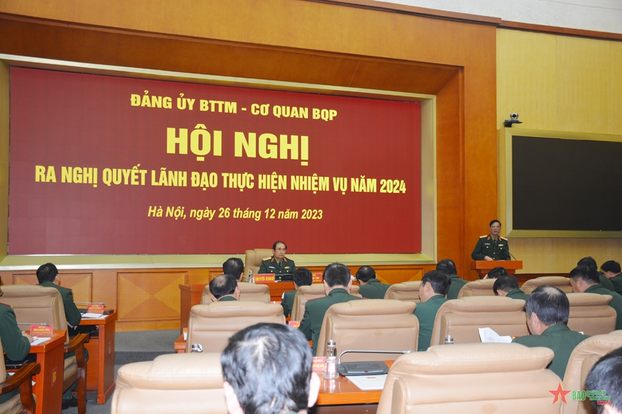 Chiều 26-12, Đảng ủy Bộ Tổng Tham mưu-Cơ quan Bộ Quốc phòng tổ chức Hội nghị ra nghị quyết lãnh đạo thực hiện nhiệm vụ năm 2024. Thượng tướng Nguyễn Tân Cương, Ủy viên Trung ương Đảng, Ủy viên Thường vụ Quân ủy Trung ương, Tổng Tham mưu trưởng Quân đội nhân dân (QĐND) Việt Nam, Thứ trưởng Bộ Quốc phòng dự và phát biểu chỉ đạo hội nghị.