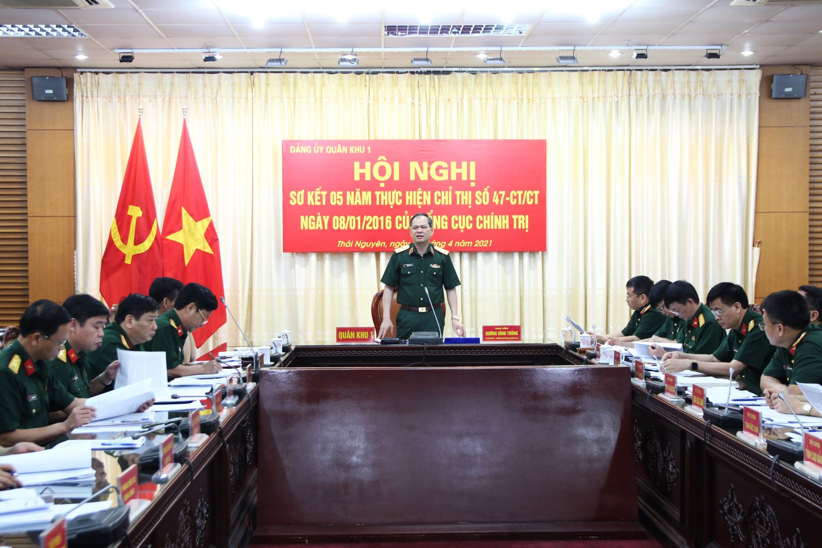 Trung tướng Dương Đình Thông, Bí thư Đảng ủy, Chính ủy Quân khu chủ trì hội nghị.