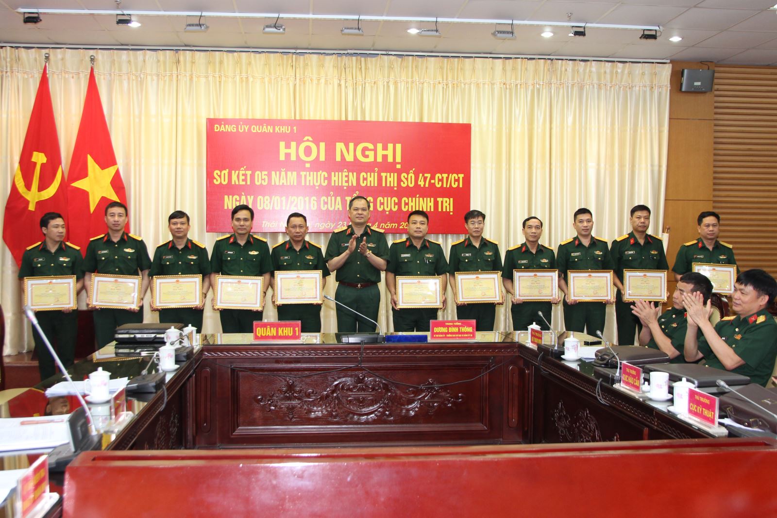 Tại hội nghị, Trung tướng Dương Đình Thông, Bí thư Đảng ủy, Chính ủy Quân khu đã tặng bằng khen cho 22 tập thể, 22 cá nhân có thành tích xuất sắc trong 5 năm thực hiện Chỉ thị 47; có 2 tập thể, 3 cá nhân được Quân khu đề nghị Tổng cục Chính trị tặng bằng khen.