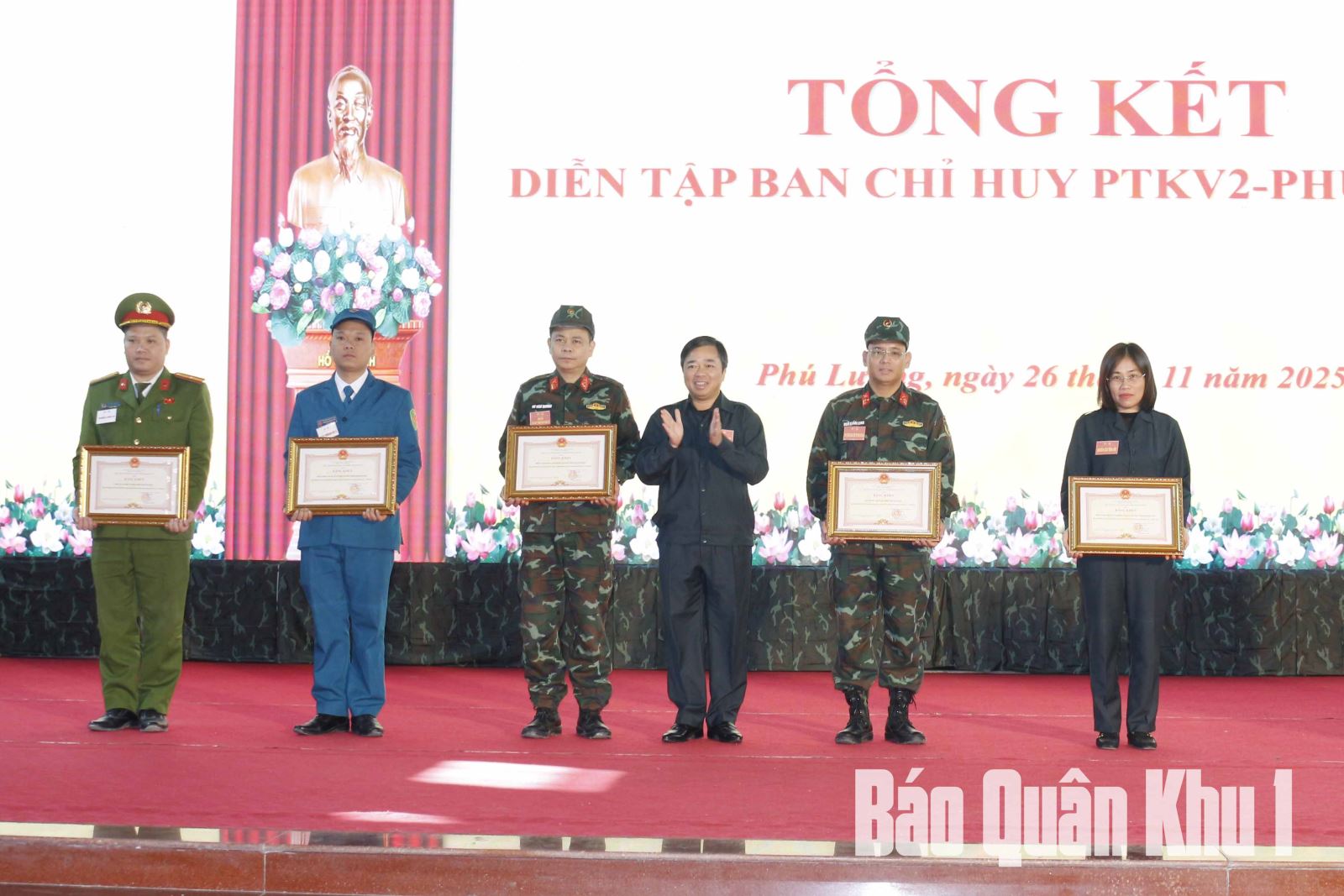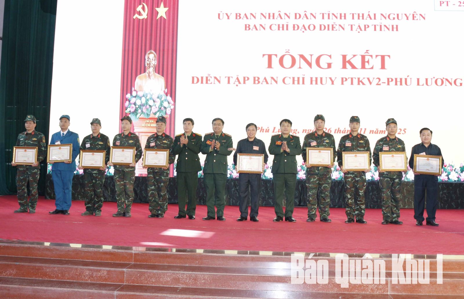 Nhân dịp này, UBND tỉnh Thái Nguyên tặng Bằng khen cho 5 tập thể và 10 cá nhân vì có thành tích xuất sắc trong thực hiện nhiệm vụ diễn tập PTKV 2-Phú Lương.