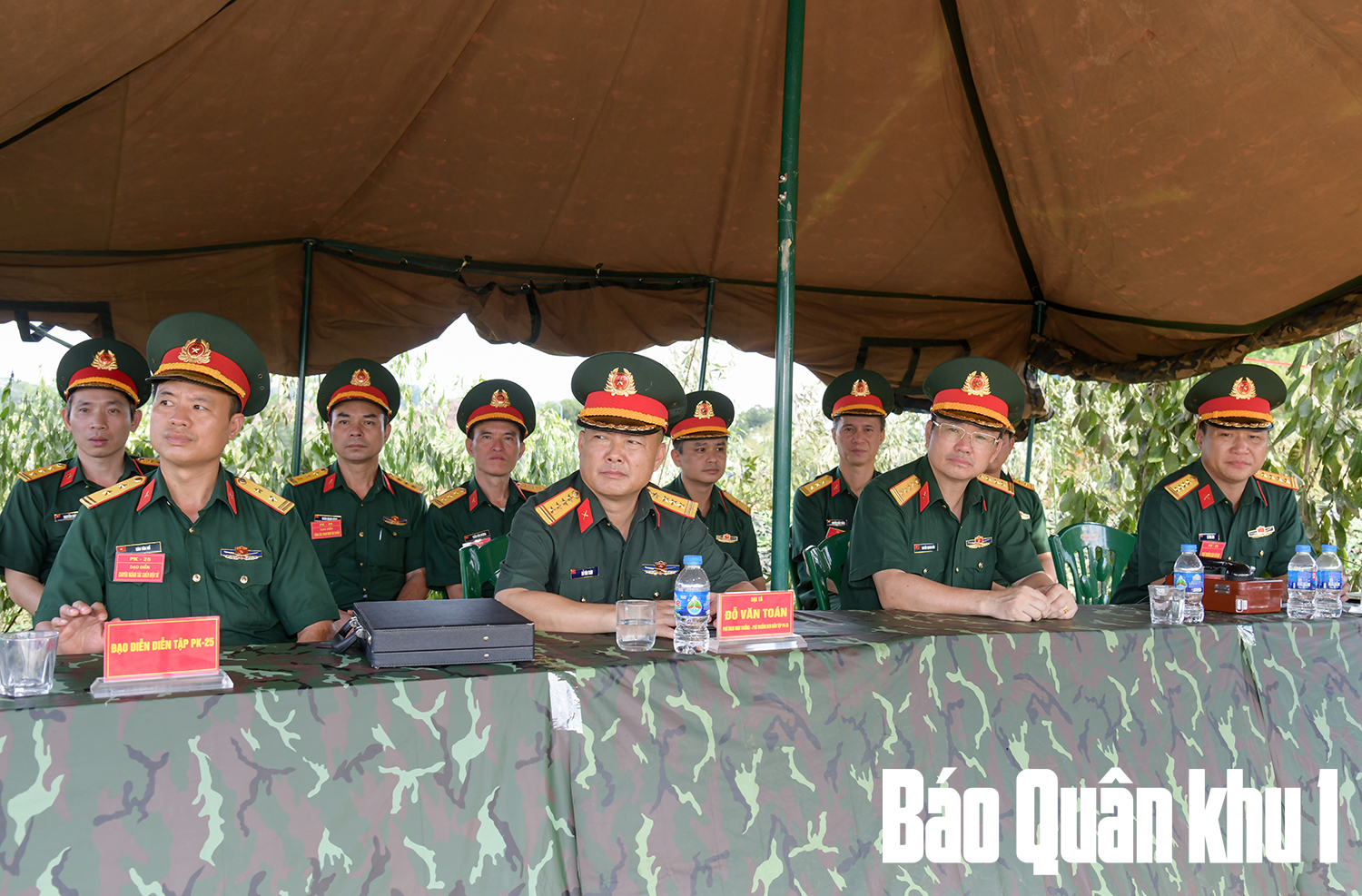 Đại tá Đỗ Văn Toán, Phó Tham mưu trưởng Quân khu cùng đoàn đạo diễn Quân khu theo dõi, chỉ đạo diễn tập.