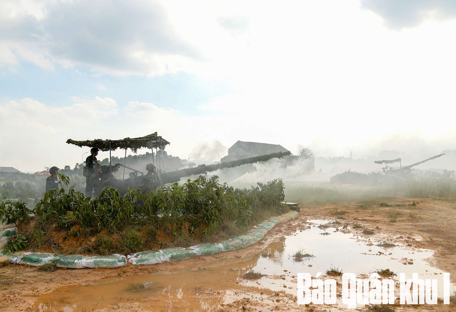 Khẩu đội pháo 57mm thực hành chiến đấu trong diễn tập.