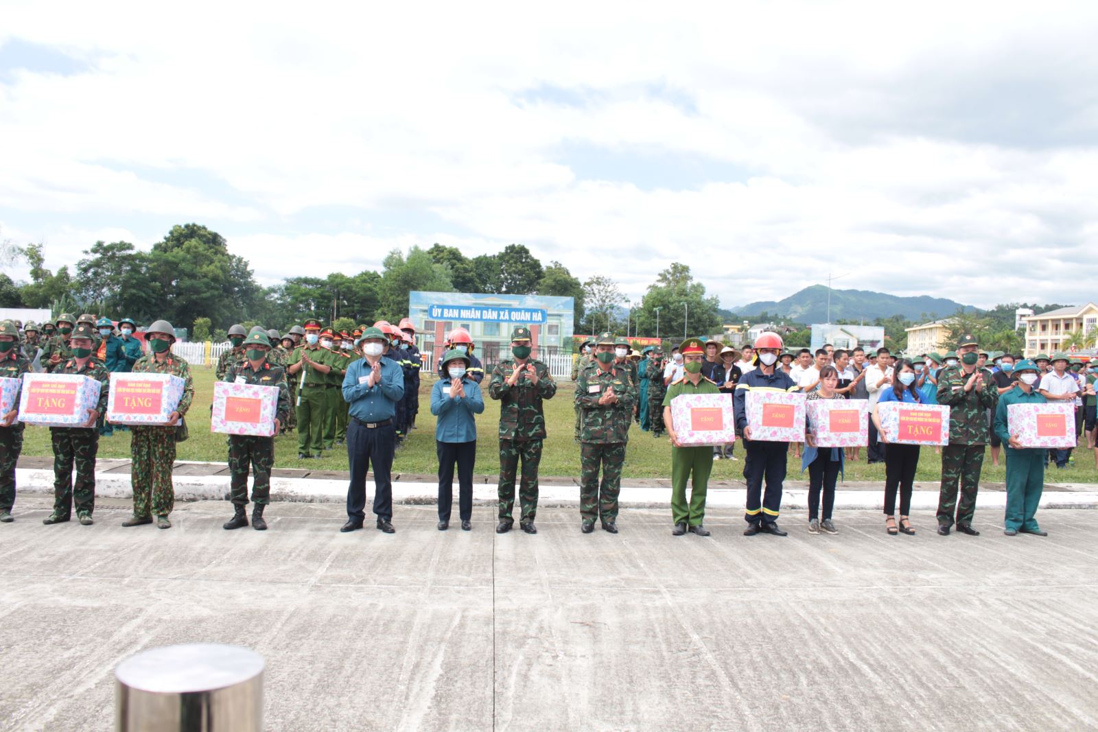 Thủ trưởng Bộ tư lệnh Quân khu và lãnh đạo tỉnh Bắc Kạn tặng quà cho các lực lượng tham gia diễn tập thực binh.