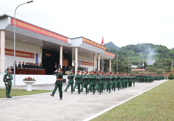 Cán bộ, chiến sĩ Trung đoàn 246 duyệt đội ngũ.