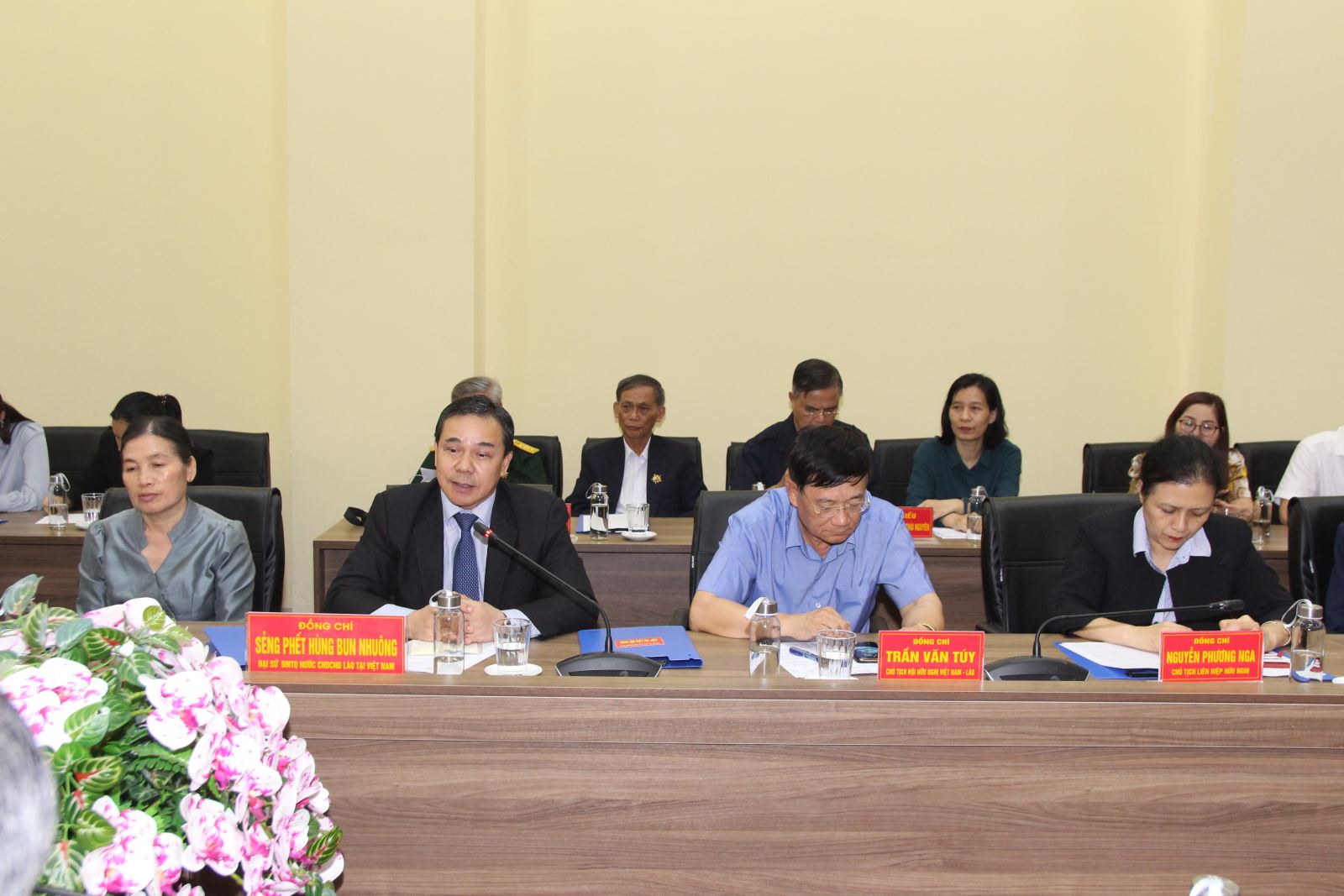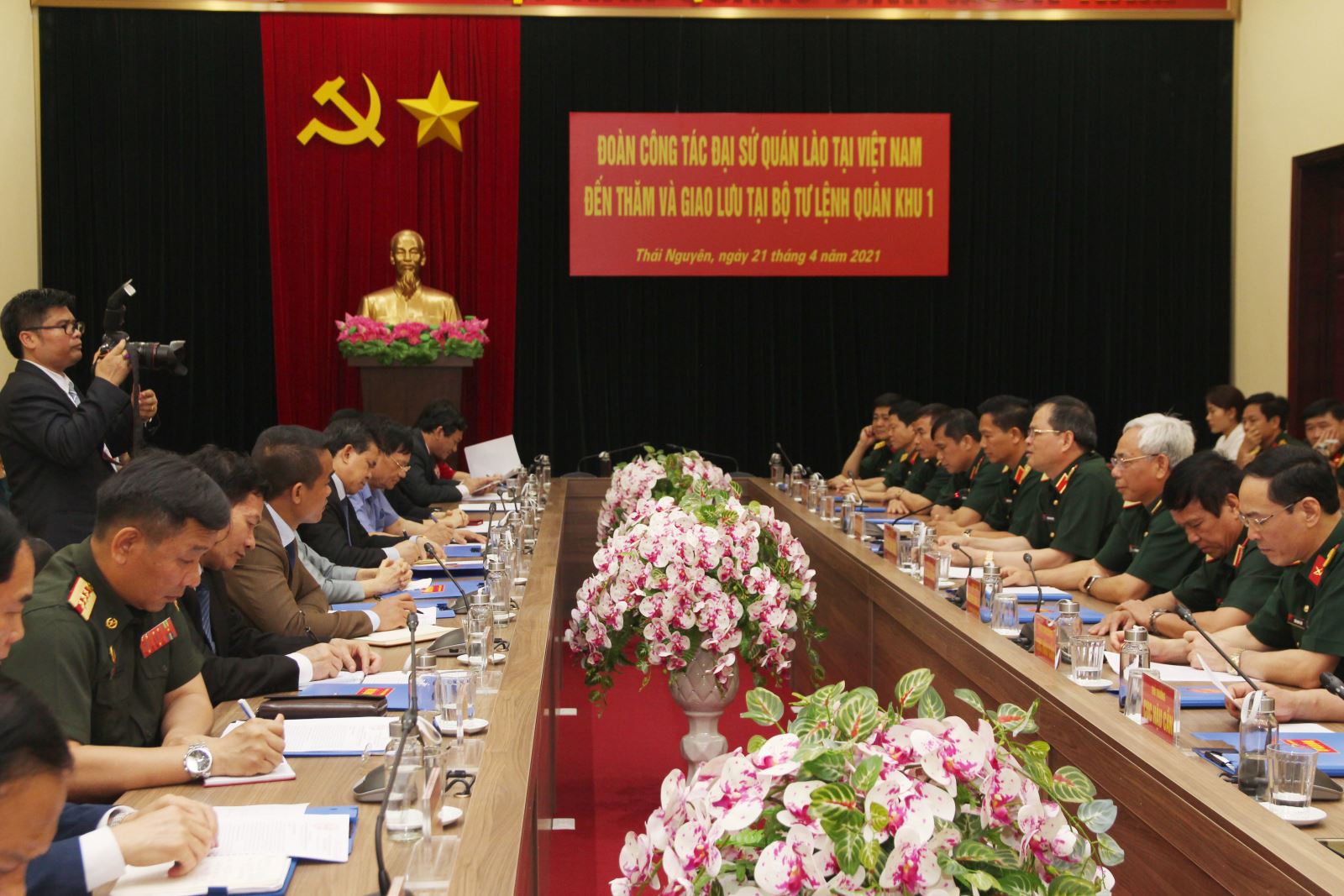 Chiều 21-4, đoàn công tác Đại sứ quán Lào tại Việt Nam do đồng chí Sẻng Phết Hùng Bun Nhuông, Đại sứ đặc mệnh toàn quyền nước Cộng hòa Dân chủ Nhân dân Lào tại Việt Nam làm trưởng đoàn đã đến thăm và làm việc tại Bộ tư lệnh Quân khu. Cùng đi có đồng chí Trần Văn Túy, Chủ tịch Trung ương Hội hữu nghị Việt Nam - Lào; đồng chí Nguyễn Phương Nga, Chủ tịch Liên hiệp các tổ chức hữu nghị Việt Nam và lãnh đạo Hội hữu nghị Việt Nam - Lào tỉnh Thái Nguyên.