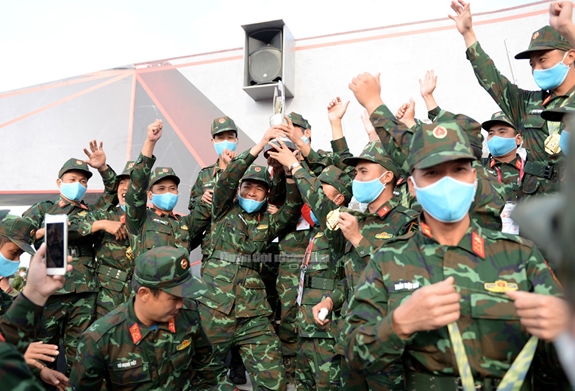 Niềm vui của các thành viên Đội tuyển xe tăng Việt Nam.