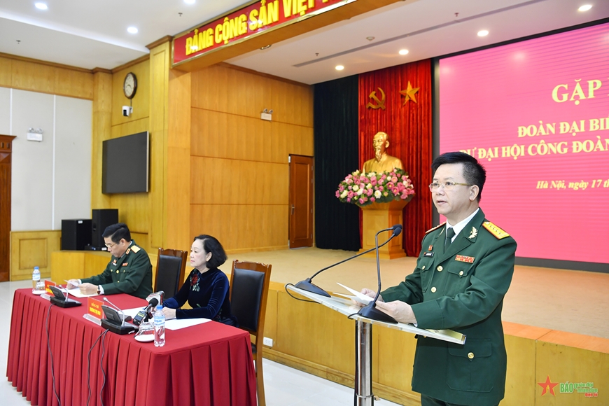 Báo cáo với đồng chí Trương Thị Mai về công tác chuẩn bị đại hội và những thành tích phong trào công nhân và hoạt động Công đoàn Quân đội giai đoạn 2018-2023, Đại tá Nguyễn Đình Đức, Trưởng ban Công đoàn Quốc phòng cho biết, 5 năm qua, cùng với tổ chức công đoàn trong cả nước, Công đoàn Quân đội đã không ngừng lớn mạnh, trở thành điểm tựa vững chắc của đoàn viên công đoàn, người lao động. Phong trào công nhân và hoạt động công đoàn trong Quân đội đã hoàn thành toàn diện các mục tiêu, chỉ tiêu Đại hội Công đoàn Quân đội lần thứ IX đề ra, một số mục tiêu, chỉ tiêu hoàn thành xuất sắc. Nội dung, phương thức hoạt động có nhiều đổi mới, phù hợp thực tiễn nhiệm vụ phát triển nền công nghiệp quốc phòng, xây dựng Quân đội, bảo vệ Tổ quốc.