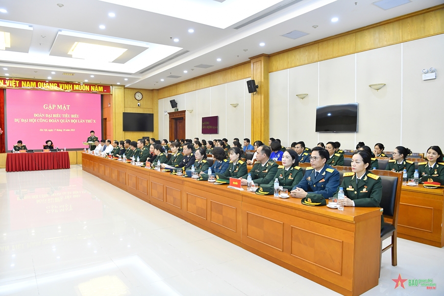 Các đại biểu đoàn viên công đoàn tiêu biểu dự Đại hội đại biểu Công đoàn Quân đội lần thứ X tại buổi gặp mặt.