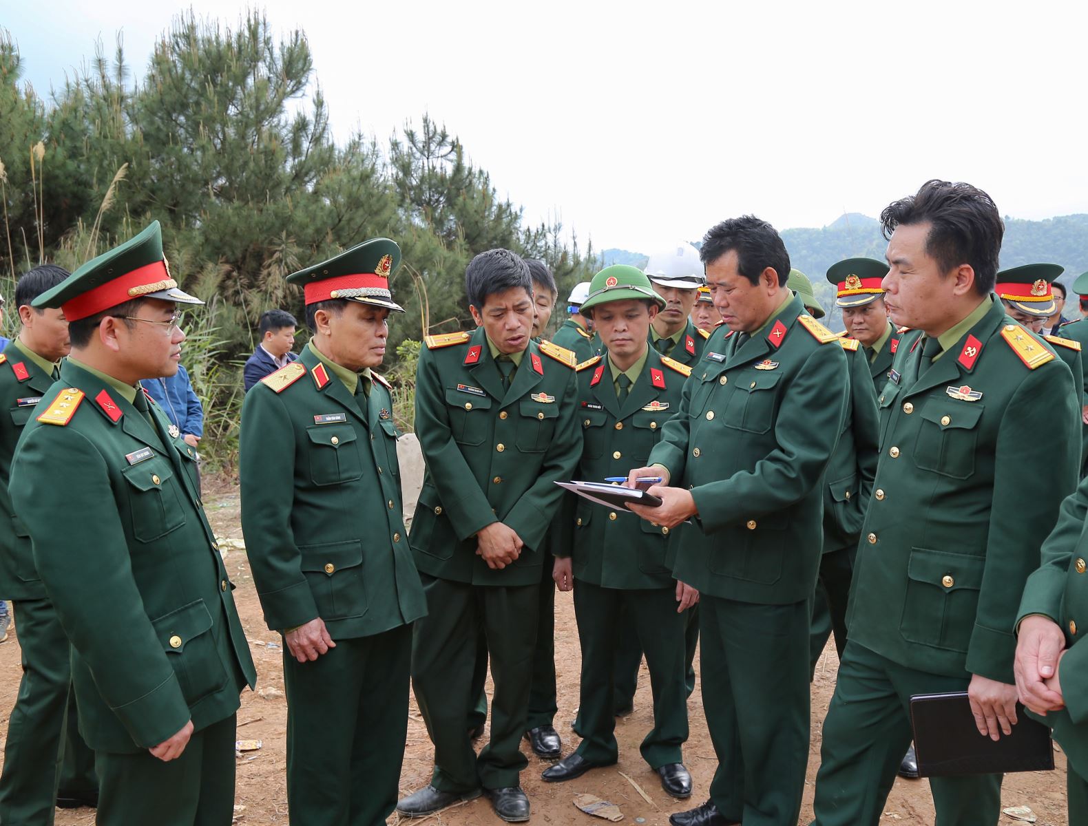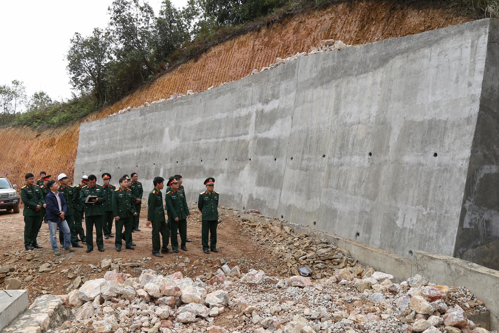 Thiếu tướng Trần Văn Kình, Phó tư lệnh Quân khu, Trưởng ban Dự án Đường tuần tra biên giới cùng Đoàn công tác Bộ Quốc phòng kiểm tra thực địa tại gói thầu số 1.