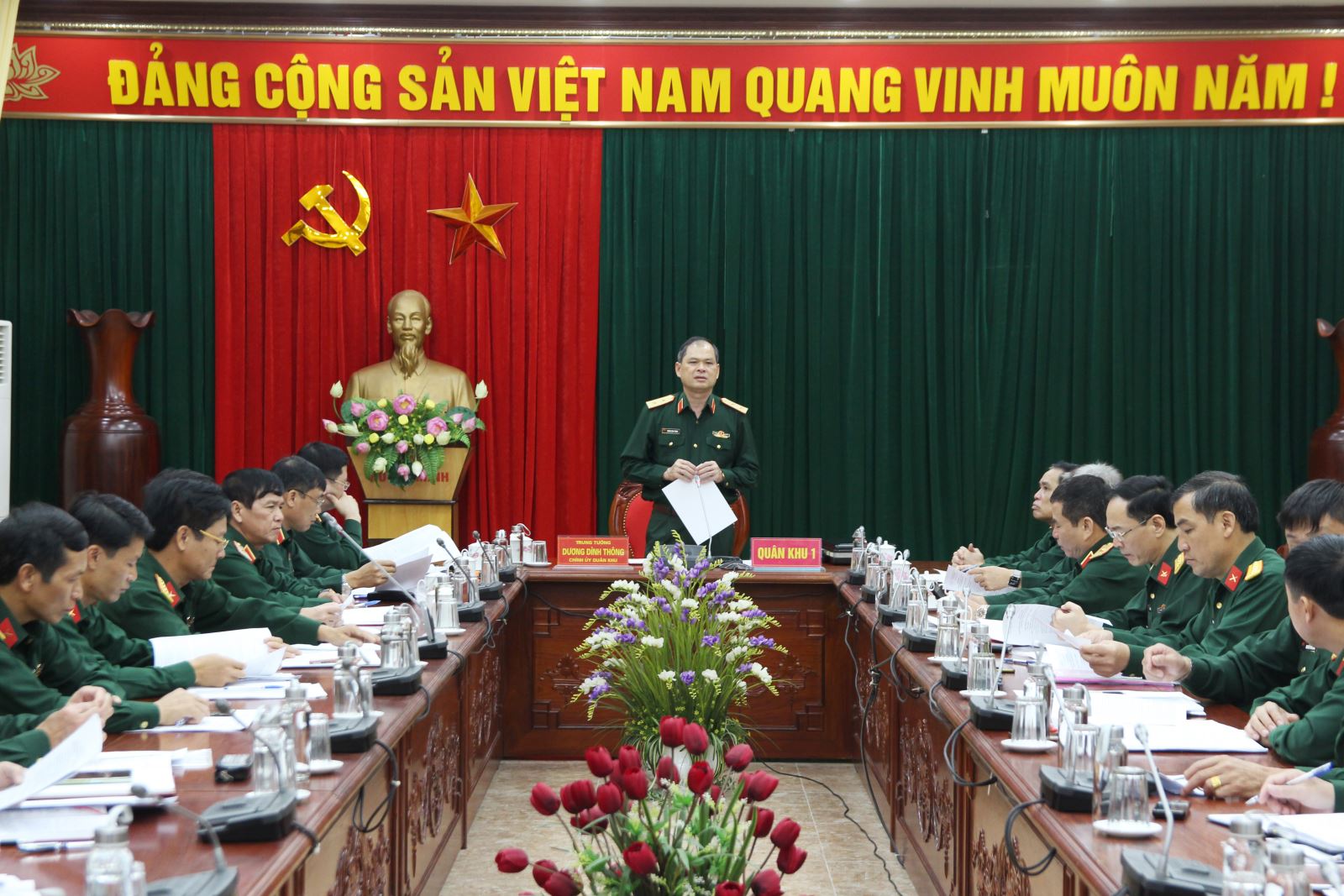 Phát biểu tại hội nghị, Trung tướng Dương Đình Thông, Chính ủy Quân khu, Chủ tịch Hội đồng TĐKT khẳng định: Các tập thể được hội nghị thống nhất đề nghị trên xét, quyết định tặng danh hiệu Cờ thi đua Chính phủ và Cờ thi đua Bộ Quốc phòng là những tập thể hoàn thành xuất sắc nhiệm vụ năm 2020, tiêu biểu, toàn diện trên tất cả các mặt công tác, có sức lan tỏa trong LLVT Quân khu và thỏa mãn các tiêu chuẩn theo Thông tư của Bộ Quốc phòng quy định. Quá trình tổng hợp, thẩm định của cơ quan thường trực bảo đảm chặt chẽ; Hội đồng TĐKT đã làm việc nghiêm túc, trách nhiệm với tinh thần khách quan, dân chủ, xem xét toàn diện, thấu đáo nỗ lực, công sức phấn đấu, kết quả hoàn thành nhiệm vụ của các đơn vị, đồng thời tôn trọng nguyên tắc, tuân thủ các quy định, hướng dẫn của trên về công tác TĐKT, đảm bảo tính thuyết phục.