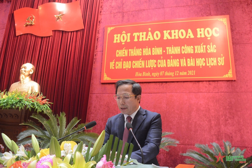 Phát biểu khai mạc hội thảo, Thượng tướng Lê Huy Vịnh nhấn mạnh: “Chiến thắng Hòa Bình là một sự kiện quan trọng trong tiến trình cuộc kháng chiến chống thực dân Pháp, thể hiện tầm nhìn chiến lược, sự linh hoạt, sáng tạo của Bộ Chính trị, Ban Chấp hành Trung ương Đảng, Tổng Quân ủy và Bộ Tổng Tư lệnh. Với chiến thắng to lớn này, quân và dân ta tiếp tục giữ quyền chủ động và phát triển thế tiến công chiến lược, trong khi thực dân Pháp ngày càng lâm vào thế bị động, lúng túng, bị mất quyền chủ động chiến lược”.