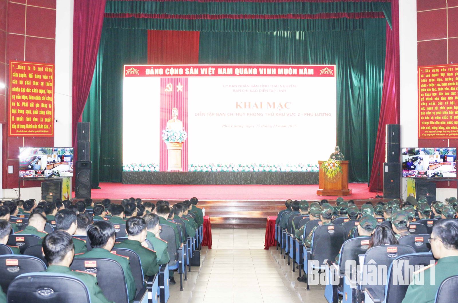 Phát biểu chỉ đạo tại buổi khai mạc diễn tập, Thiếu tướng Trương Mạnh Dũng, Tư lệnh Quân khu nhấn mạnh cuộc diễn tập trong khu vực phòng thủ của Ban CHPTKV2 – Phú Lương, tỉnh Thái Nguyên, có ý nghĩa đặc biệt quan trọng, góp phần nâng cao khả năng SSCĐ, xây dựng khu vực phòng thủ tỉnh ngày càng vững chắc.
