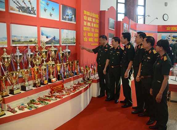 Các đại biểu tham quan Triển lãm thành tựu quân sự, quốc phòng.