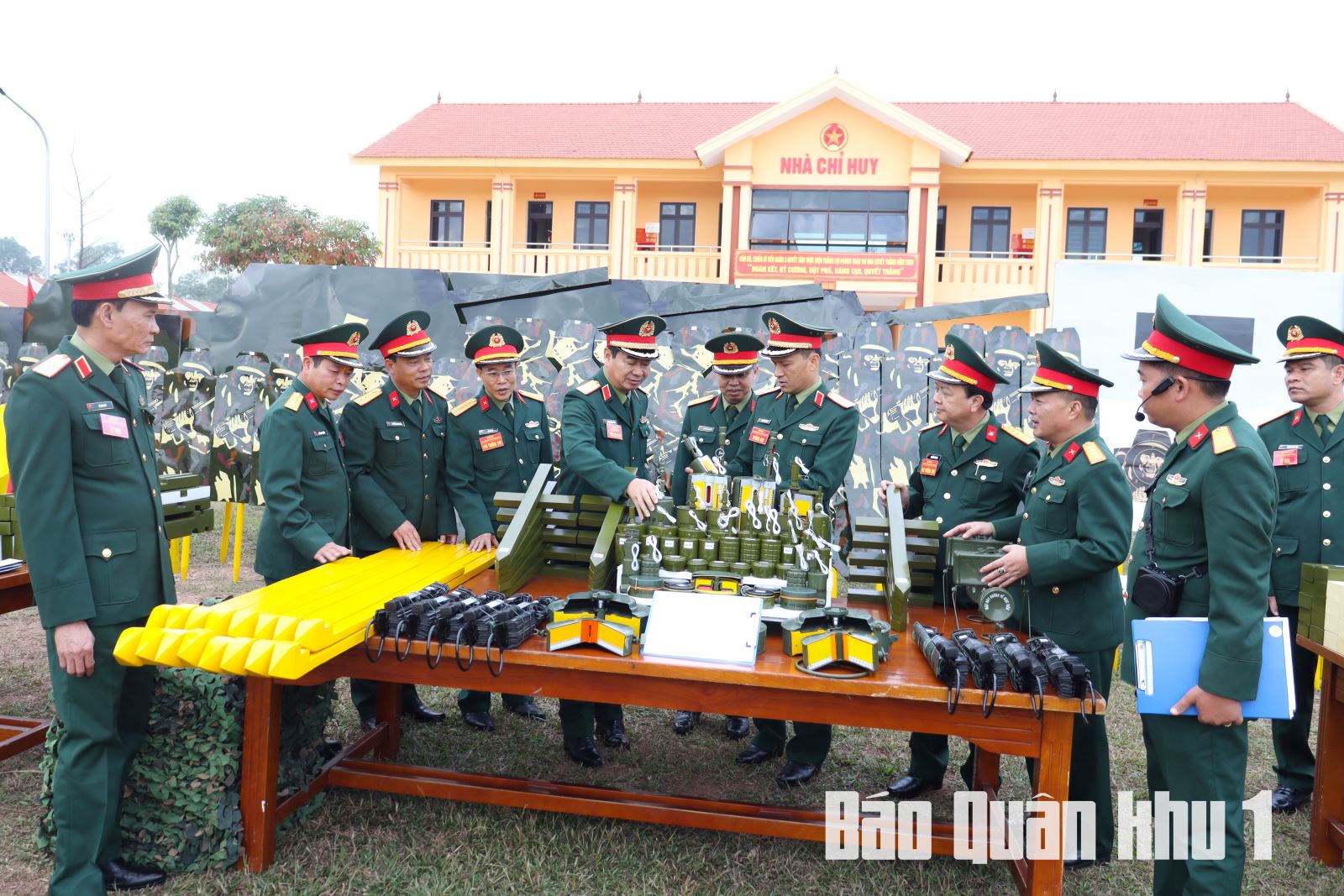 Các đại biểu tham quan mô hình, trang thiết bị huấn luyện phục vụ tập huấn.