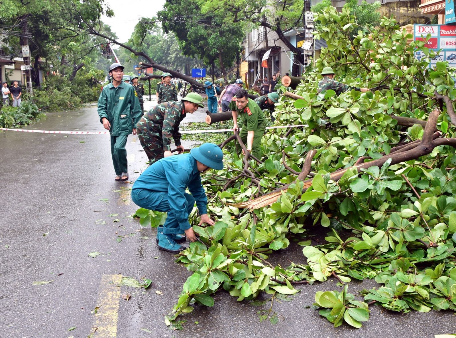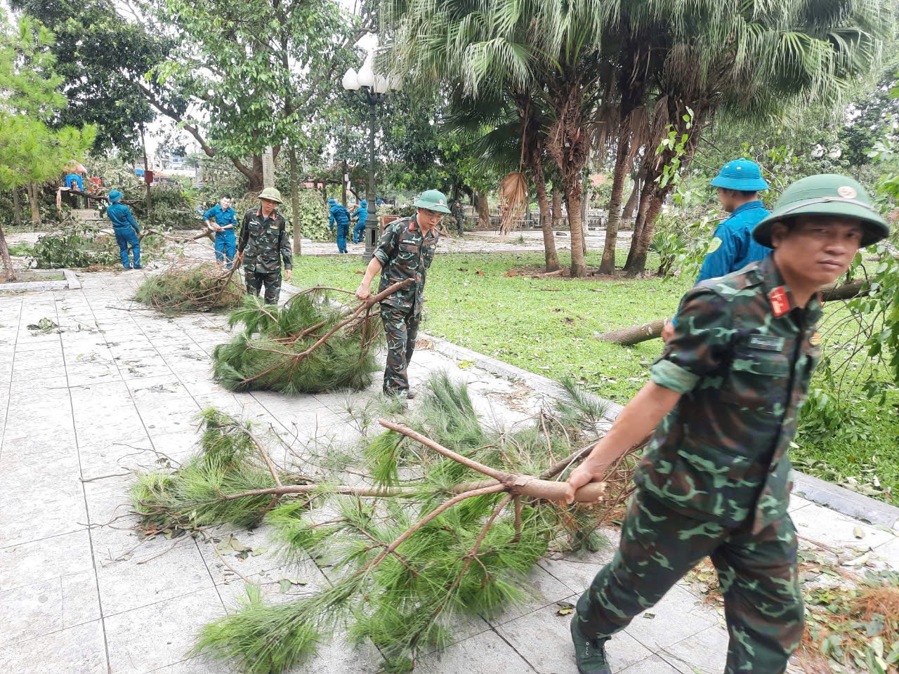 Bên cạnh đó, Ban CHQS các huyện, thị xã, thành phố đã huy động cả lực lượng thường trực và dân quân tự vệ tập trung giải phóng cây xanh đã bị gãy đổ trên các trục đường trung tâm, với mục tiêu khắc phục nhanh nhất để kịp thời phục vụ nhu cầu đi lại của người dân. Ngoài ra, đơn vị cũng tích cực tham gia thu gom rác thải trên các tuyến đường, hỗ trợ vệ sinh tại các trường học, bệnh viện, giúp đỡ các hộ gia đình chính sách trên địa bàn khẩn trương khắc phục hậu quả, nhanh chóng ổn định cuộc sống.