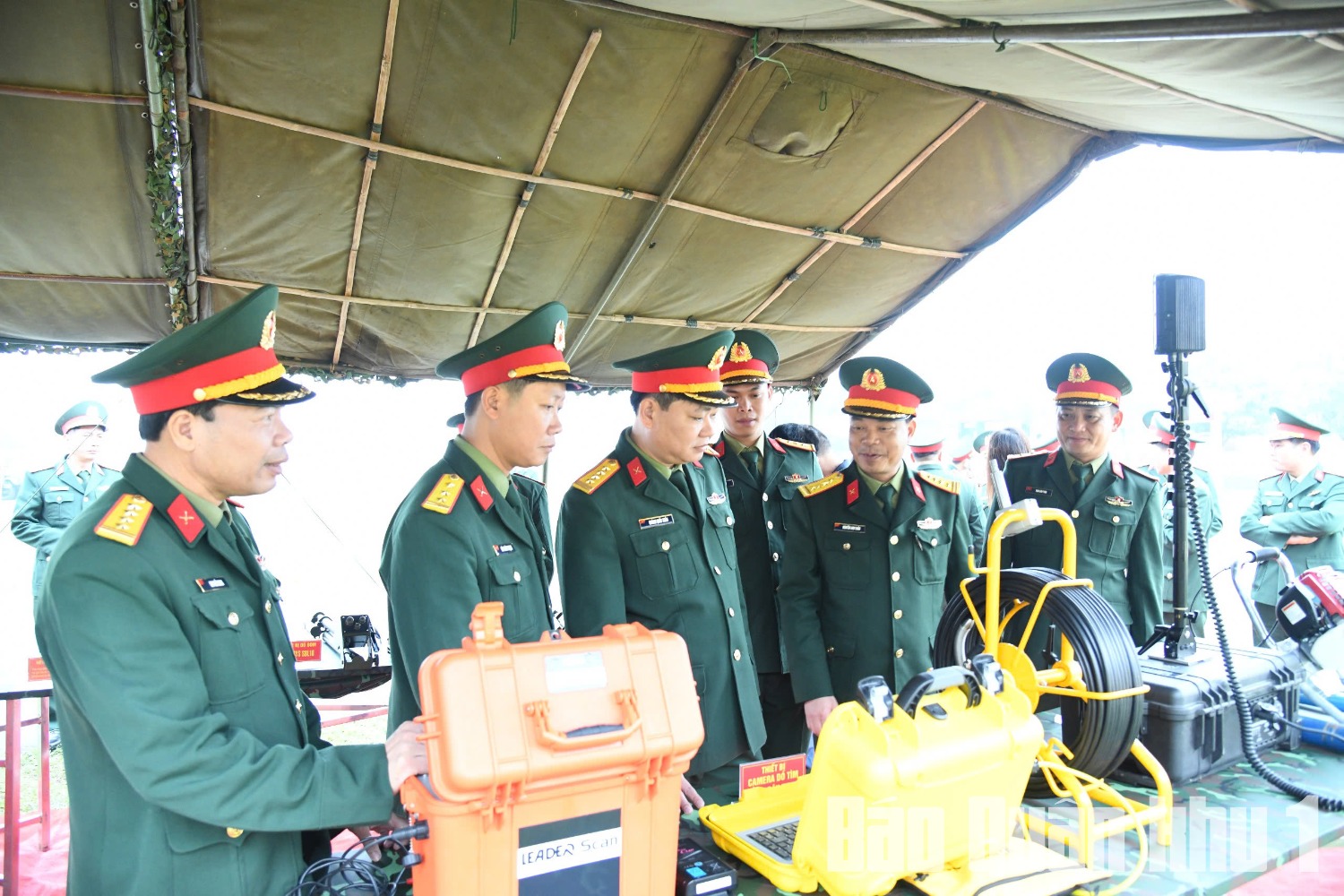 Các đại biểu tham quan mô hình học cụ, các sáng kiến, cải tiến kỹ thuật trong huấn luyện.