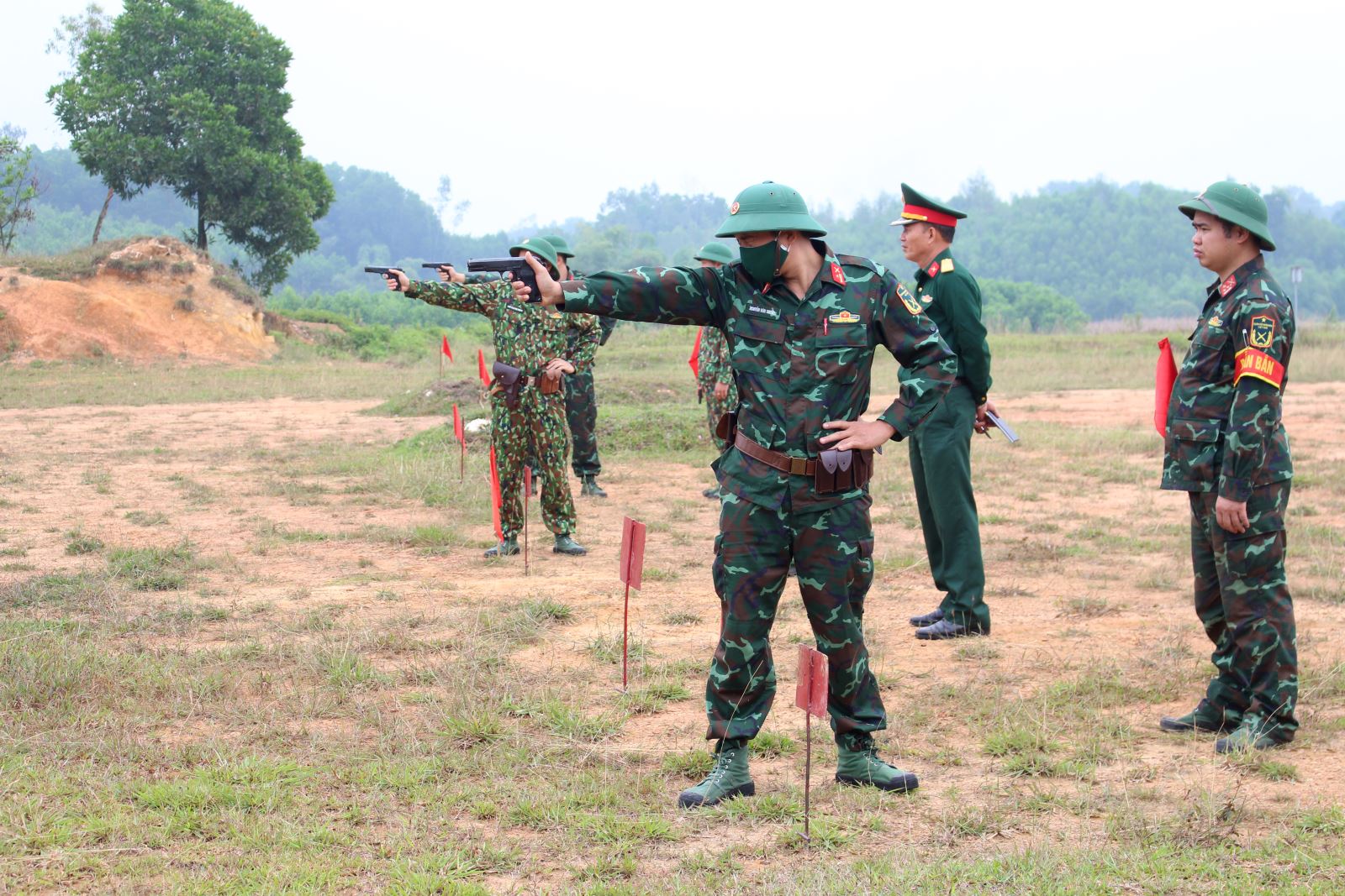 Kiểm tra bắn súng ngắn K54 đối với giáo viên Trường Quân sự Quân khu.