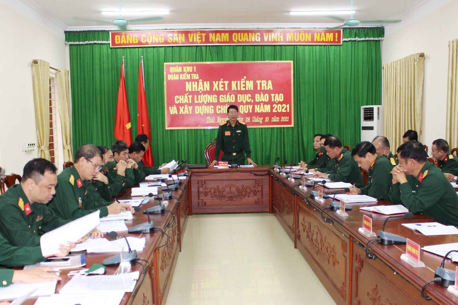 Ngày 28-10, đoàn công tác Quân khu do Đại tá Trần Hùng Cương, Phó tham mưu trưởng Quân khu làm trưởng đoàn tiến hành kiểm tra chất lượng giáo dục, đào tạo và xây dựng chính quy năm 2021 đối với Trường Quân sự Quân khu.