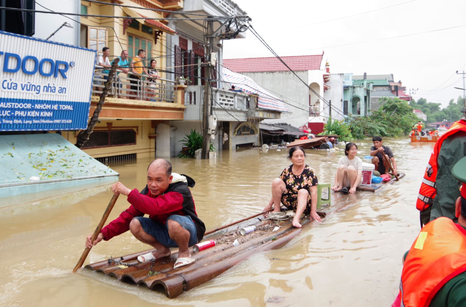 Người dân tại các khu vực thuộc huyện Tràng Định nỗ lực di chuyển ra khỏi vùng ngập úng.