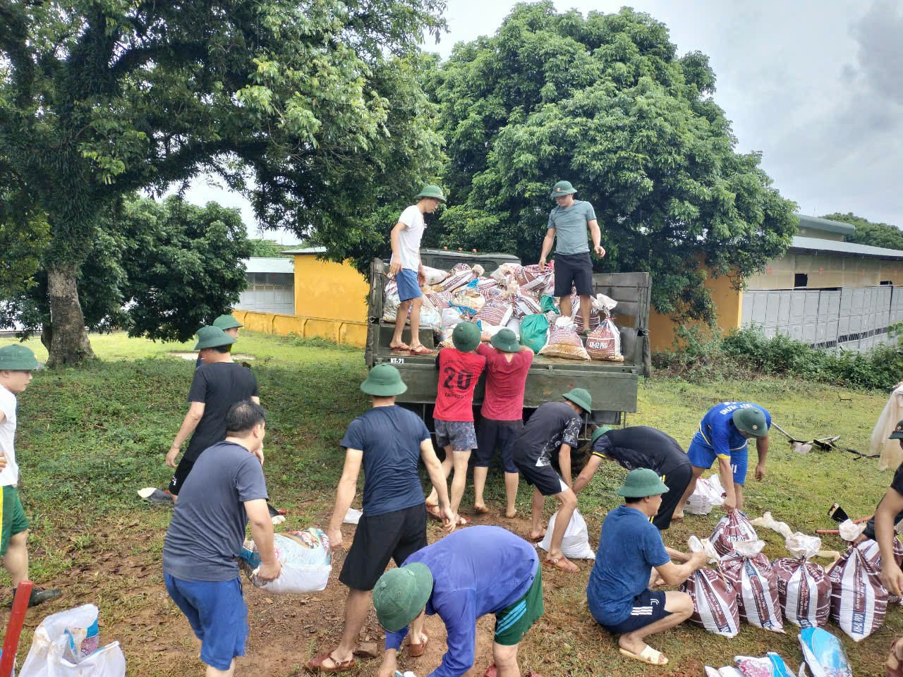 Hình ảnh cán bộ, chiến sĩ Kho K21 (Cục Kỹ thuật) cùng các lực lượng giúp nhân dân xã Linh Sơn, TP Thái Nguyên phòng, chống và khắc phục hậu quả mưa bão.