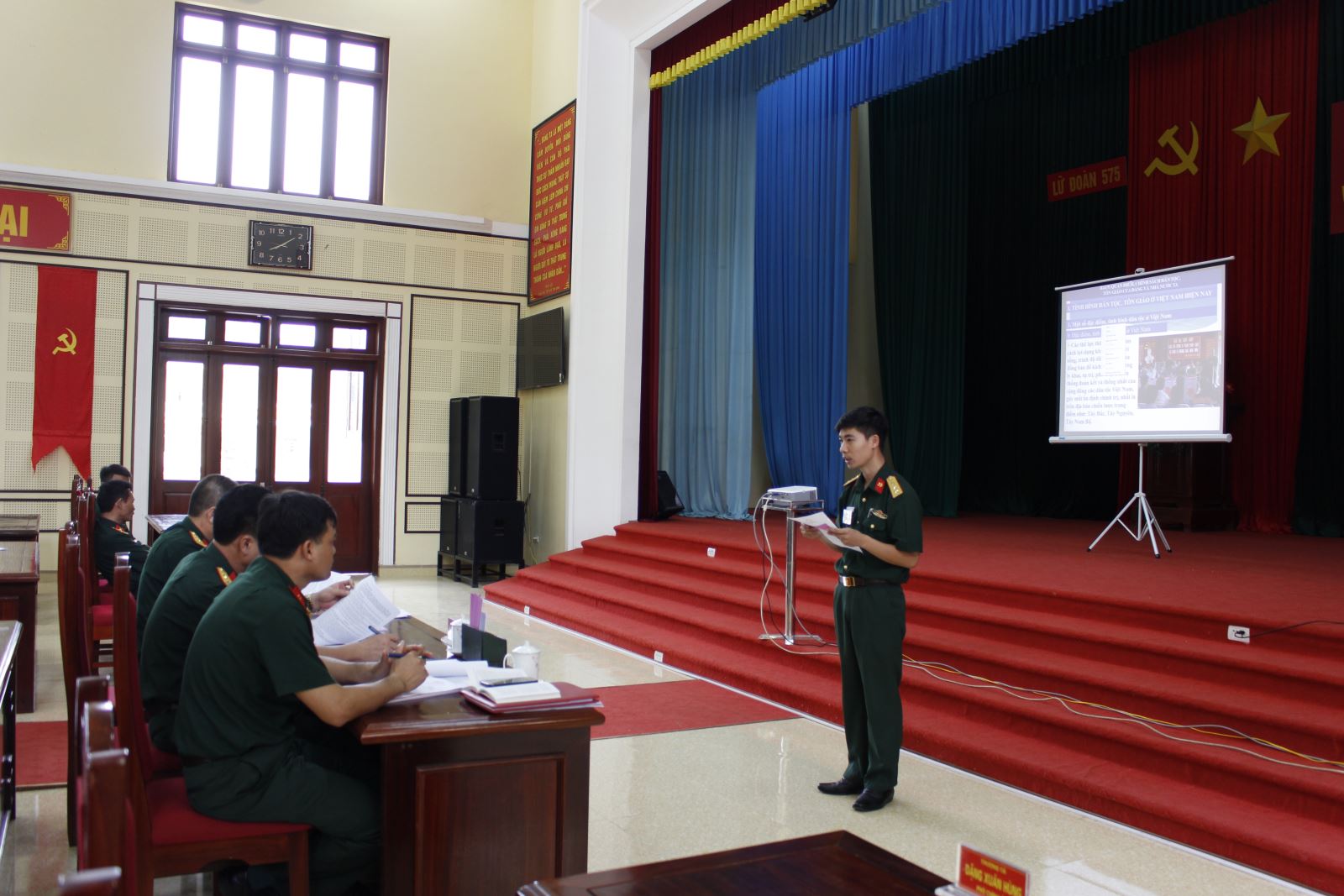 Sáng 10-6, Lữ đoàn 575 tổ chức khai mạc Hội thi cán bộ giảng dạy chính trị năm 2020 và rút kinh nghiệm công tác giáo dục chính trị ở đơn vị cơ sở. Đại tá Lê Văn Thơ, Phó Chủ nhiệm Chính trị Quân khu dự và theo dõi hội thi.