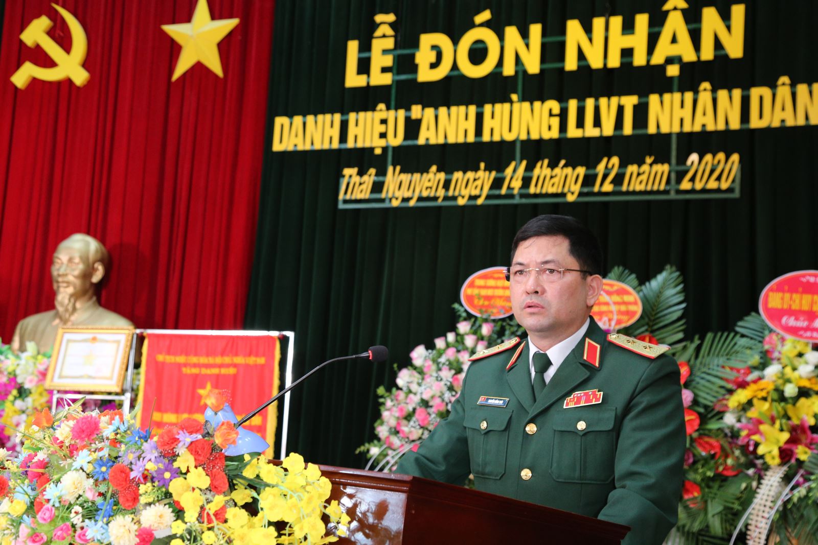 Thừa uỷ quyền của Chủ tịch nước, Trung tướng Nguyễn Hồng Thái, Tư lệnh Quân khu đã trao tặng danh hiệu Anh hùng LLVT nhân dân cho Lữ đoàn Phòng không 210.
