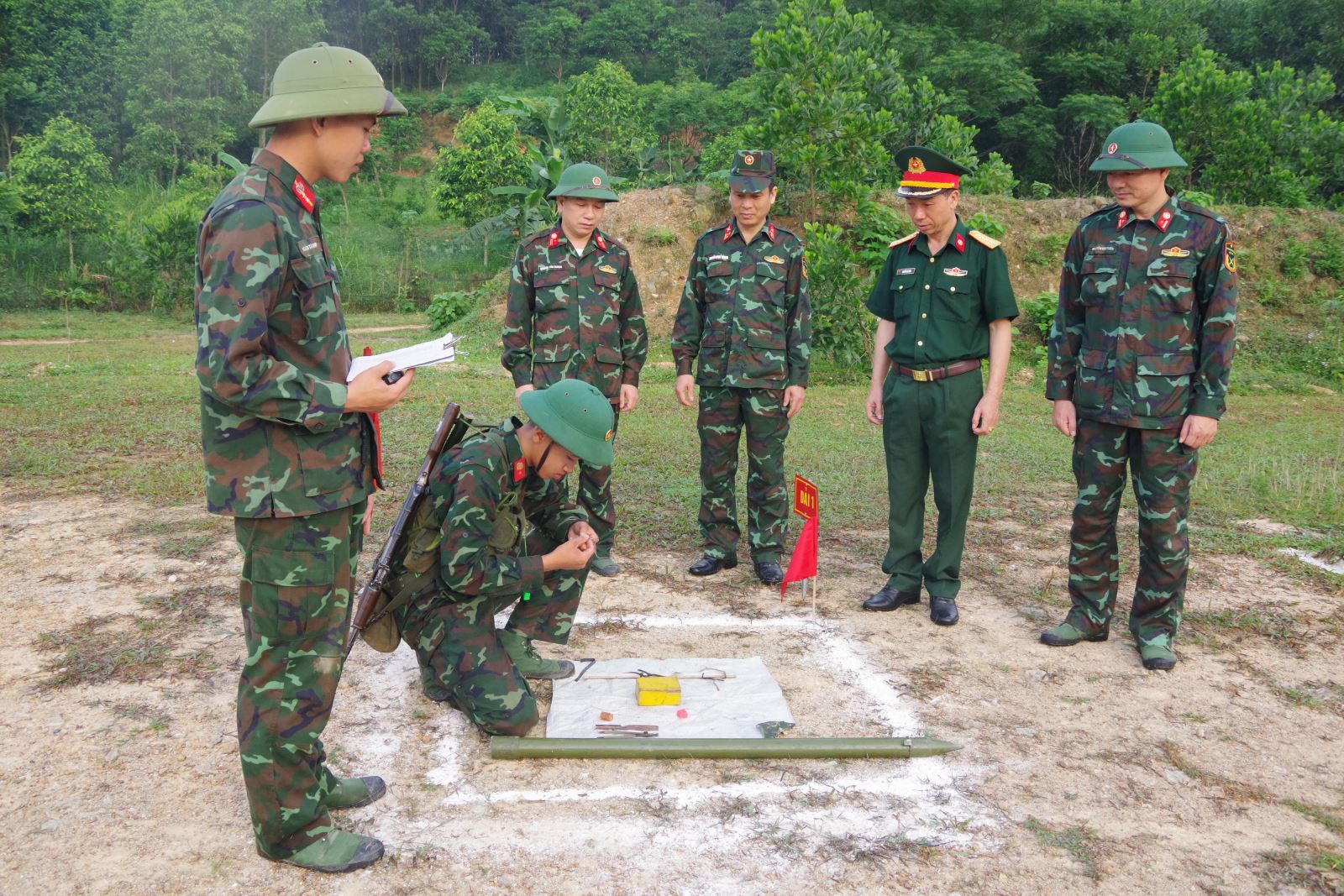 Quá trình huấn luyện, đơn vị tổ chức bắn phân đoạn và bắn tổng hợp để chiến sĩ làm quen với tiếng nổ, xây dựng tâm lý vững vàng. Kết thúc 3 ngày kiểm tra “3 tiếng nổ”, các nội dung đều đạt khá và giỏi. Trong đó, kết quả bắn súng tiểu liên AK bài 1 có 97,5% đạt yêu cầu, trong đó 88% khá, giỏi; đánh thuốc nổ và ném lựu đạn trên 90% đạt khá, giỏi; đơn vị bảo đảm an toàn tuyệt đối về người và vũ khí trang bị.