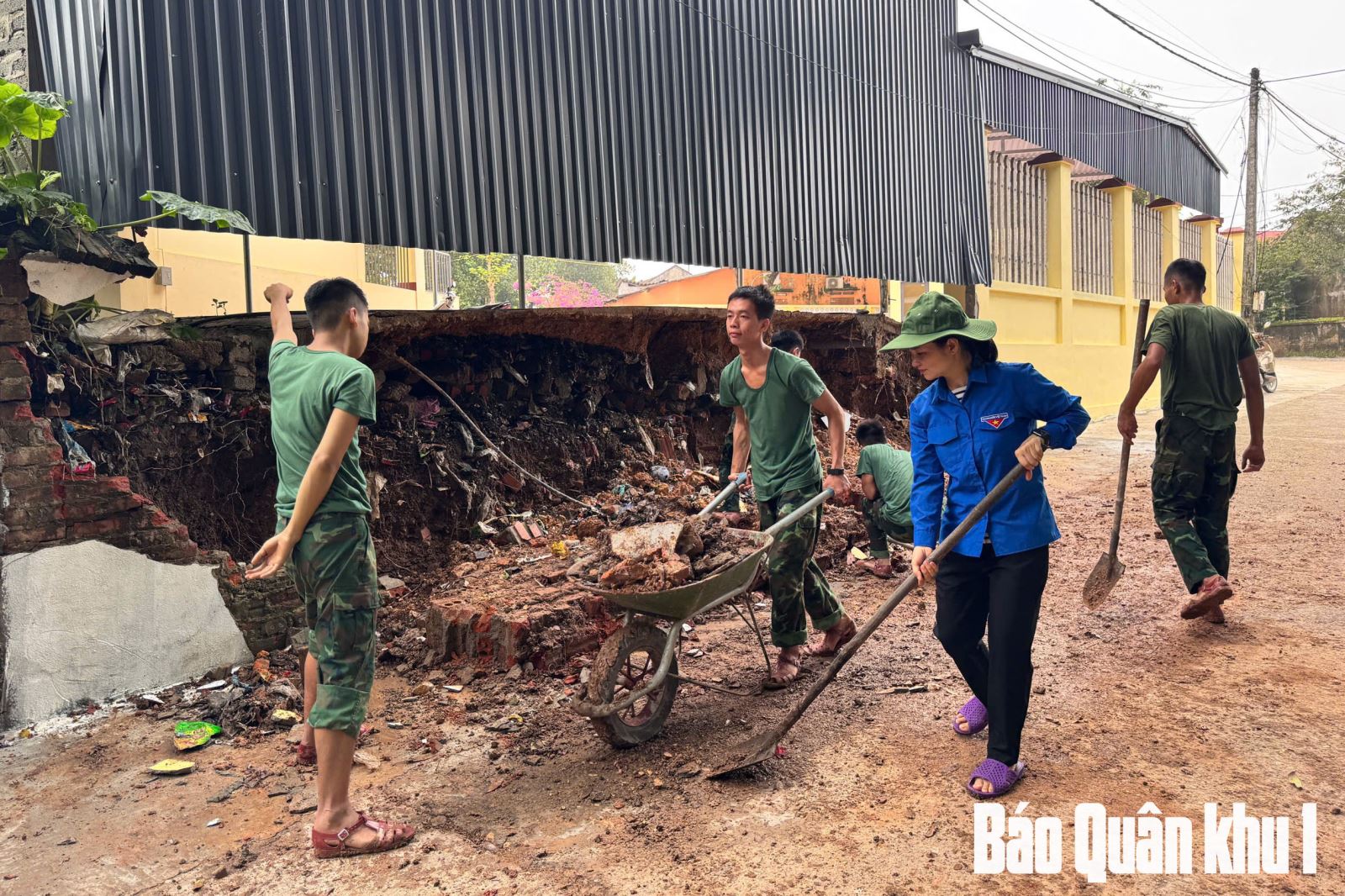 Từ sáng sớm 9-10, ngay khi nước rút, cán bộ, chiến sĩ đơn vị tiếp tục sát cánh cùng nhân dân và các trường học trên địa bàn, khẩn trương dọn dẹp vệ sinh môi trường, quyết tâm sớm khôi phục cuộc sống bình thường sau lũ.