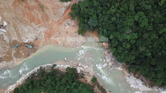 Khu vực sạt lở của Thủy điện Rào Trăng 3 nhìn từ trên cao.