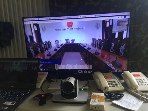 Cầu truyền hình tại Thủy điện Rào Trăng 4, sẵn sàng cho cuộc họp giữa Sở chỉ huy tiền phương và Ủy ban nhân dân tỉnh Thừa Thiên - Huế cùng các ban, ngành chức năng của tỉnh.
